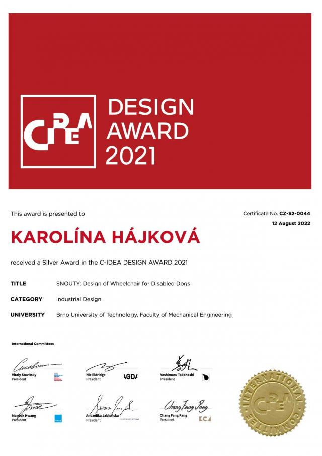 After school, she would like to work in design of rehabilitation and health aids for animals, although she admits that the possibilities in the Czech Republic are rather limited. "Over the summer I designed braces for cats and luckily they worked. And I know a lot of dog patients, too. They often light up completely when they get the wheelchair. Suddenly, they are able to run again, they are able go into the water, you can see all the joy in them," concludes the young designer with enthusiasm.