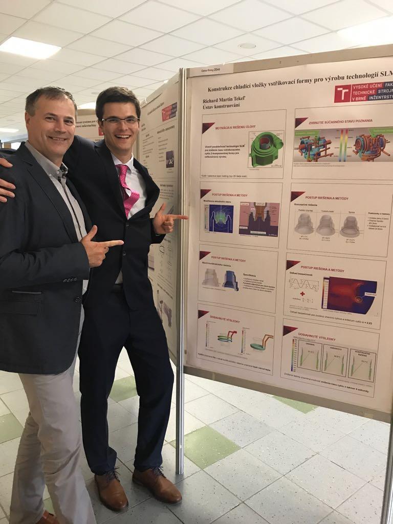 Musel jsem napsat další motivační dopis, tentokrát přímo fakultě, která excellence scholarship uděluje. V něm jsem musel vysvětlit, proč zrovna já jsem vhodný adept pro jejich stipendium. Školné na mém oboru je přibližně 13 400 liber ročně a já mám díky školnému 35% slevu, což je přibližně 4 700 liber. Spočítal jsem si, kolik hodin bych musel odpracovat, abych si na to vydělal. Svoji žádost o stipendium jsem pak zformuloval tak, že díky stipendiu získám v životě navíc velké množství času, které nemusím věnovat vydělávání na splácení půjčky, ale mohu se dál věnovat nějakému výzkumu a vývoji. Svou bakalářskou prací vyhrál Richard Cenu průmyslového podniku (ŽĎAS) | Autor: Archiv Richarda M. Tekeľa