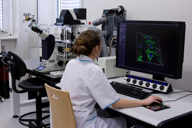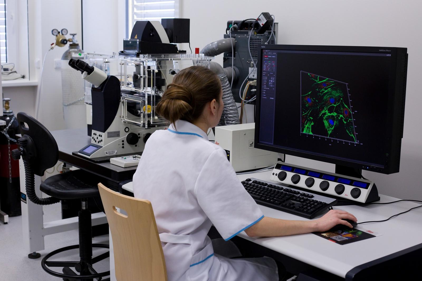 Pomocí mikroskopů sledoval srdeční buňky, takzvané kardiomyocyty, z potkanů. Konkrétně ho zajímalo jejich pulzování, tedy excitace a kontrakce. „Používal jsem jak samostatné izolované kardiomyocyty, tak upravené kmenové buňky, které vytváří shluky kardiomyocytů. Díky světelné mikroskopii se zobrazením ve světlém poli jsme schopni sledovat detailní změny při roztahování a stahování buněk. Současným využitím fluorescenční mikroskopie dokážeme navíc hodnotit např. změnu koncentrace vápníkových kationtů. Získáváme tím řadu signálů, které mají jasnou souvislost, a po jejich zanalyzování se dozvídáme více o elektrofyziologických vlastnostech srdečních buněk,“ vysvětlil Čmiel.