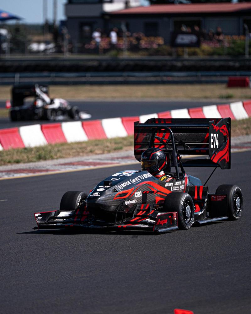 Zatím poslední formule se jmenuje Dragon e5. | Autor: TU Brno RacingAnna Piarová: Na autě máme skvělý hardware, ale není odladěný. Proto teď děláme různá měření a testování, abychom zjistili, kde je chyba. Hlavní cíl sezóny je určitě zvýšit spolehlivost powertrainu, abychom dokázali jezdit spolehlivě na všechny čtyři motory. Další obrovskou změnou bylo umístění motorů do kol vozidla čili jsme měli úplně nový návrh převodovky, a i tam jsou rezervy. A kdyby byl čas, hezký bonus by bylo vytvořit řídicí algoritmy, abychom potenciál čtyřkolky využili na maximum, což by byl další krok směrem k nejlepším týmům na světě.