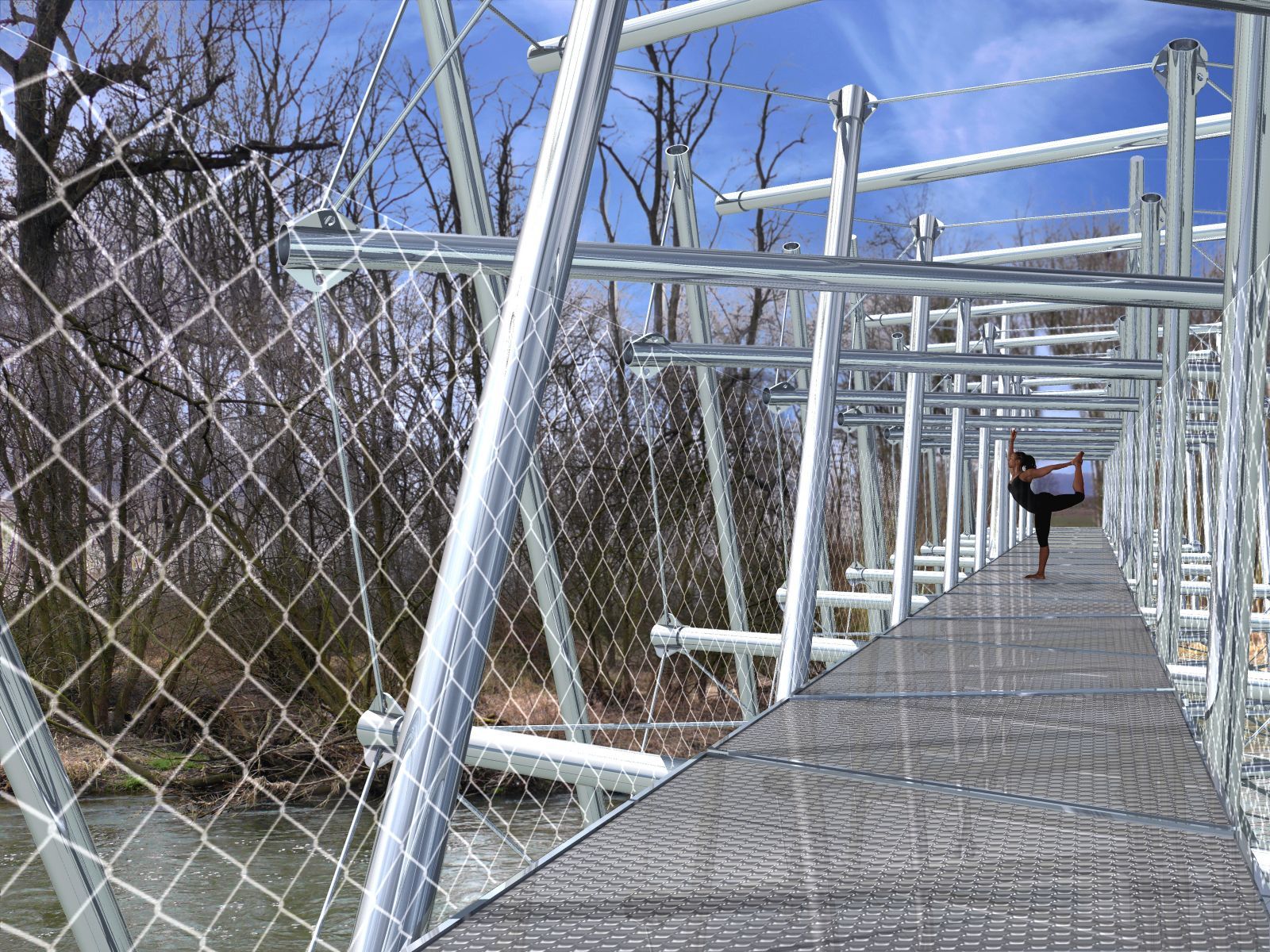 Most přes řeku, který vypadá, že levituje? I taková může být pěší lávka v moderním pojetí. Tu navrhla Petra Buganská z Fakulty architektury VUT v Brně. Její práce zaujala porotu soutěže Stavba Jihomoravského kraje 2015 a udělila jí hlavní cenu v kategorii studentských prací.