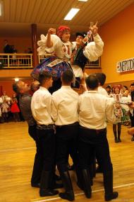 V našich svátečních hodových krojích se nedají tančit všechny lidové tance jako v těch odlehčených folklorních krojích. Třeba zvedačky jsou v polešovickém kroji úplně nereálné. Po našem se ale dá tančit boršické, částkov, hucké… Kluci pak tancují sólově verbuňk, holky karičky.