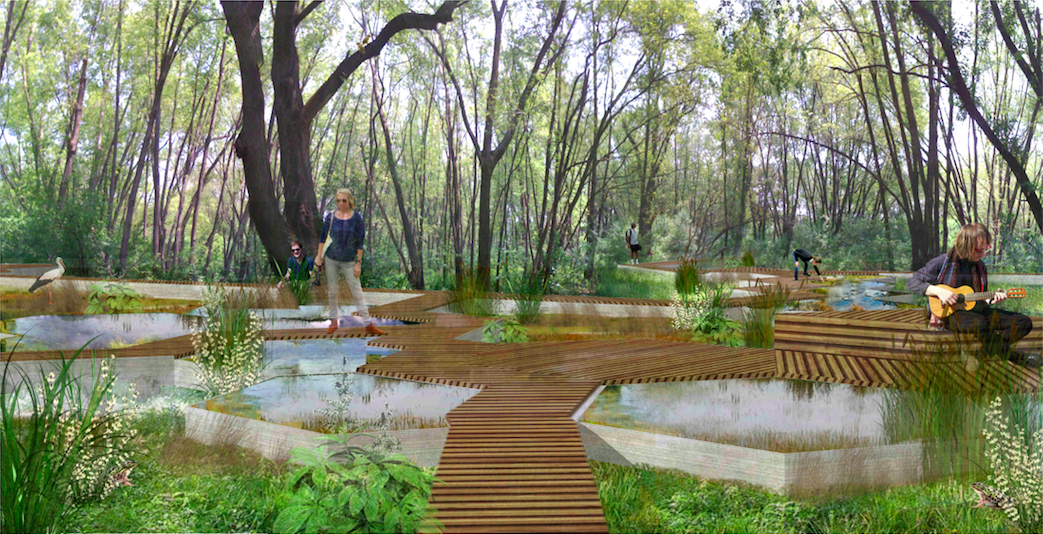 Ke spolupráci studentů různých fakult z různých vysokých škol došlo díky Nině Krajčírové, která všechny dohromady spojila a iniciovala společnou práci na návrhu. „Díky tomu, že se sešli zahradní architekti z Mendelu a architekti z VUT, tak každý viděl problém zadaného místa ze svého úhlu pohledu,“ vysvětlila Veronika Očadlíková. Samotnému návrhu předcházel mini průzkum mezi lidmi, kteří bydlí v okolí místa, kterého se má změna dotknout. Studenti zjistili, že tam místní často nechodí, nebo dokonce že tam nikdy nebyli. „To bylo celkem pochopitelné, protože krajina nevypadá pěkně a už vůbec ne přívětivě pro provozování sportovních aktivit a neláká ani k přirozenému sdružování lidí,“ vysvětlila Očadlíková. Součástí týmu, jehož návrh byl odbornou porotou vybrán, byli také dva studenti VUT | Autor: archiv Studentského BrnaVýsledný návrh se skládá ze tří hlavních okruhů vložených do míst, která navazují na současné trasy a jsou vzájemně propojená a mají svoji funkci. „Venkovní okruh je zaměřený na sport, prostřední na rekreaci a vnitřní, nacházející se přímo v jádru celého parku, tvoří biotop se zvýšenou vlhkostí a sítí lávek,“ popsal návrh Peter Mezei. V novém prostoru tak návštěvníci najdou místo pro workoutové aktivity, pro setkávání u grilu nebo pro relaxaci v houpací síti.