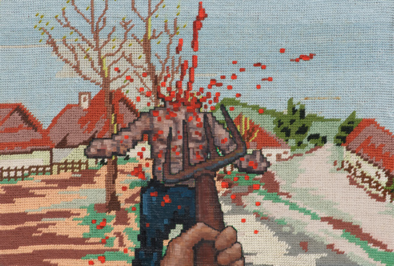 „Rád používám existující věci, namísto tvorby nových. Přijde mi, že na světě je tolik věcí, že je lepší pracovat s tím, co už je,“ vysvětluje absolvent ateliéru malířství FaVU VUT Vojtěch Luksch. Do nalezených starých ručně vyšívaných obrazů z nostalgie přimalovává atributy svého dětství – scény z počítačových her z 90. let. Za sebou má zimní výstavu v brněnském Domě umění a v roce 2022 byl finalistou Ceny za mladou malbu.