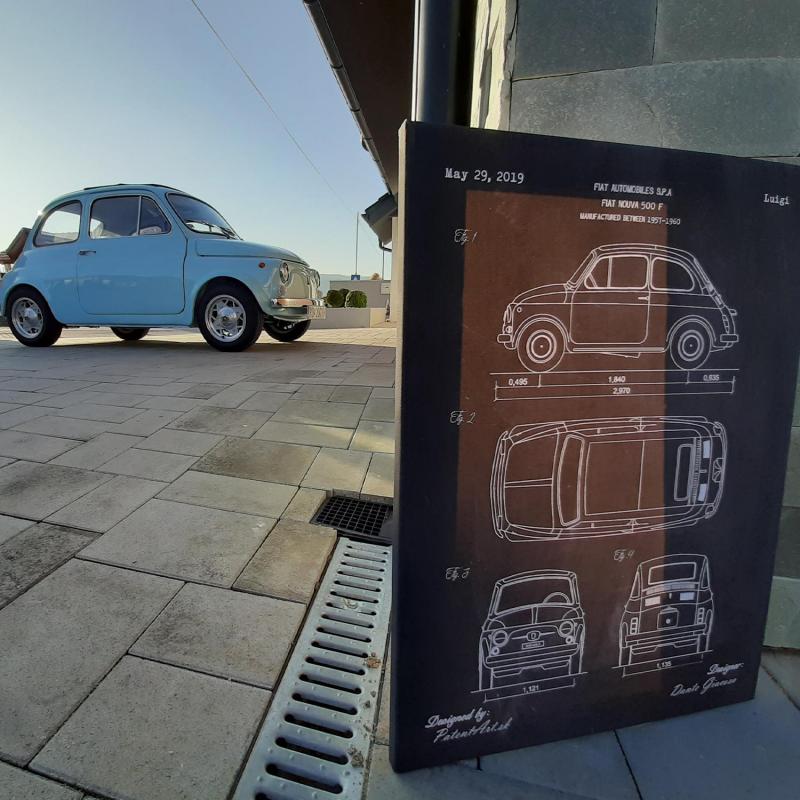 Designový nákres Fiatu 500 vytvořený na přání zákaznice | Autor: Archiv společnosti Patentart