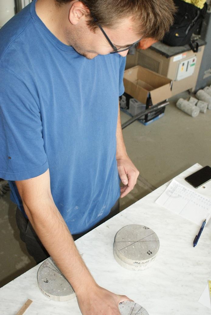 Na to, jak se chovají dva nejčastěji používané materiály ve stavebnictví, beton a ocel, se ve svém výzkumu zaměřil Petr Miarka z FAST VUT. Konkrétně ho pak zajímají lomové mechanické vlastnosti těchto materiálů. „Popisuji jejich chování v lomu. Zatěžujeme tělesa takzvaného brazilského disku, měříme tahovou pevnost a v podstatě čekáme, kdy a jak se roztrhnou,“ popsal zjednodušeně Miarka.