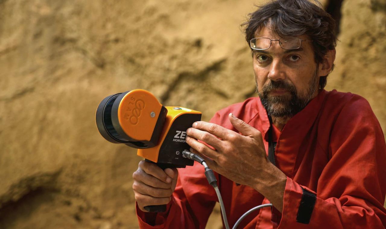 Marek Audy má za sebou řadu světových objevů: od solných jeskyní v Íránu po rozsáhlé pískovcové jeskynní komplexy ve Venezuele. Loni stanul jako první člověk v nově objeveném albánském systému hypogenních jeskyní, kde spolu s dalšími členy expedice zmapovali několik termálních jezer včetně rozlehlého jezera Neuron, pojmenovaného na počest nadace, která výzkum podpořila. Marek Audy s mobilním lidarovým skenerem geoslam. | Autor: Archiv Marka Audyho