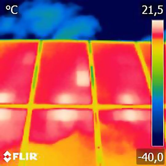 Co lze tedy termovizí odhalit? Její pomocí můžou odborníci určit, jak je teplota rozložená na povrchu panelu. Kamerou se dokážou zaměřit na místa s větší teplotou, což značí, že fotovoltaické články nevyrábí energii, ale spotřebovávají ji na výrobu ztrátového tepla. Tu může způsobovat buď nefunkční článek, nebo také jeho částečné zastínění. Panel je pak potřeba podrobněji otestovat a případně vyměnit. Přestože se dnes termovize využívá stále častěji, doteď stále chybí norma, která by stanovila, za jakých podmínek mají být snímky pořizovány a jak se má postupovat při vyhodnocování výsledků měření.