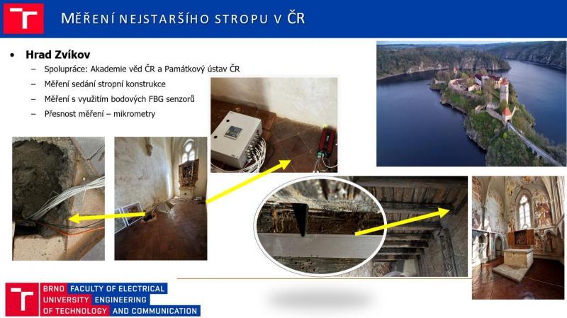 Tým odborníků v čele s Petrem Münsterem z Ústavu telekomunikací Fakulty elektrotechniky a komunikačních technologií (FEKT VUT) se od června 2024 podílí na záchraně nejstarší komplexně dochované konstrukce stropu v České republice na hradě Zvíkov. Pomáhají jim k tomu optická vlákna.