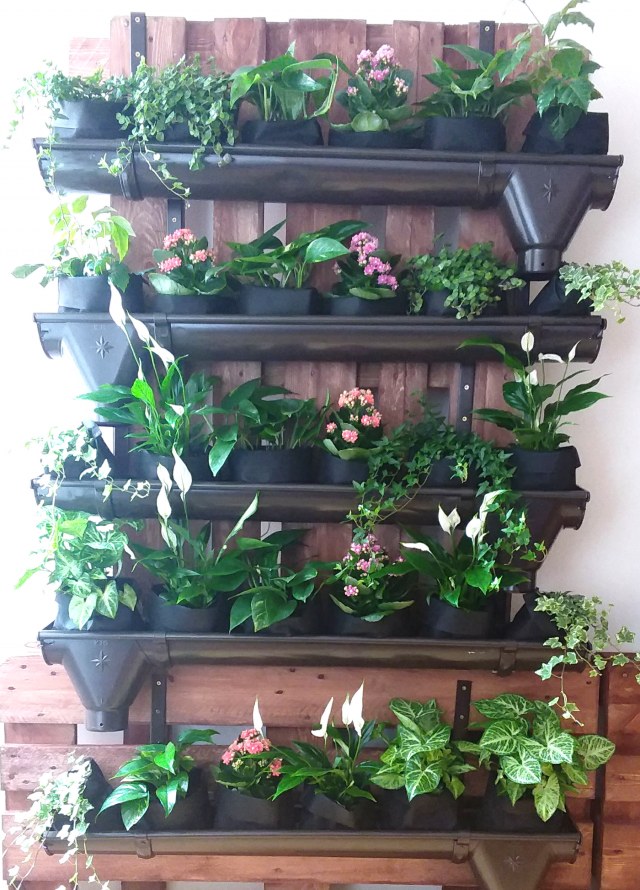 V místnosti vytvořili zelenou stěnu za pomoci palet a okapů na zalévání. „Protože se jedná o specifický výzkum, neměli jsme velký rozpočet. Celá stěna nás nakonec ale vyšla na deset tisíc,“ podotkla Rubinová s tím, že stěny od profesionálních firem se pohybují i na desetinásobku. Rostliny vybírali spíše intuitivně. „Já nejsem žádný botanik, takže jsme vybírali spíše podle toho, jak se nám to líbilo. Hodně z toho jsou oblíbené kancelářské rostliny. Také jsme chtěli, aby postupně vytvořily větší zelené plochy. Některé se ale neujaly,“ dodala s tím, že v zelené stěně se překvapivě nedařilo například břečťanům.
