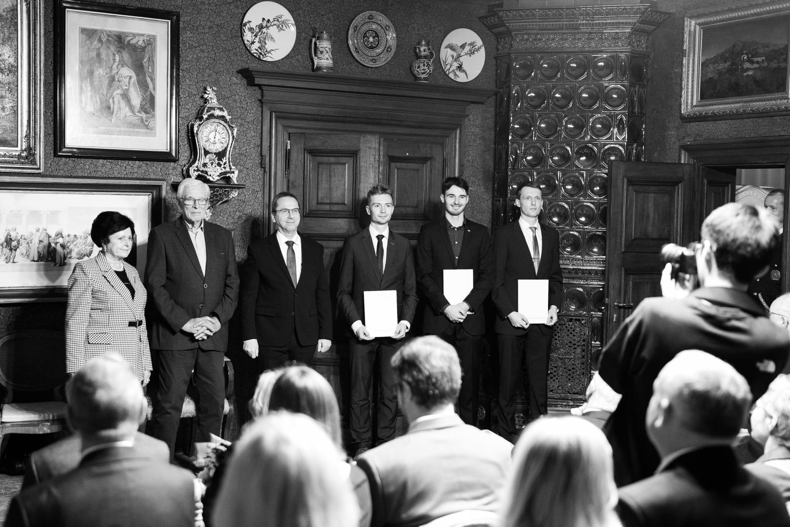Rektor VUT Ladislav Janíček s nominovanými studenty VUT na vyhlášení Cen Hlávkovy nadace. Ondřej Wojewoda třetí zprava. | Autor: Richard Cai