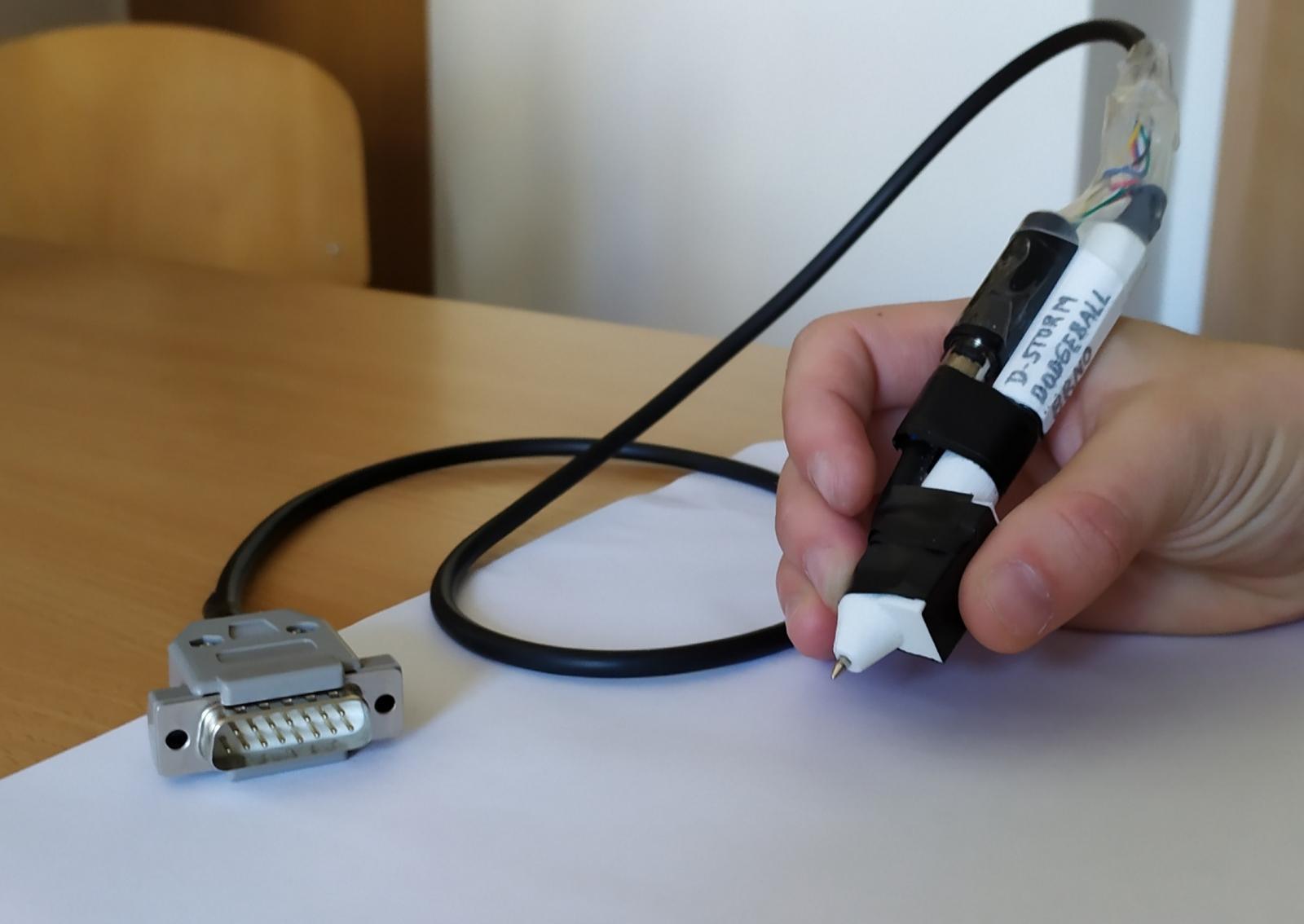Senzory připojené na tužku sbírají informace o křivce, úhlu držení i průběžné rychlosti psaní | Autor: Jan PawlusJan Pawlus chce ve své diplomové práci ukázat, jaké nové technologie je možné k padělání podpisů využívat. A být tak před falzifikátory o krok napřed. „Navrhl jsem pouze prototyp. Bude jej potřeba ještě propracovat, protože výstupy nejsou přesvědčivé. Můj návrh se padělatelům kopírovat nevyplatí. Další prototyp propisky by měl být vybaven kvalitnějšími senzory a tlakoměrem, protože přítlak je jedna z důležitých charakteristik písma. Na zvážení je i využití 3D tiskárny, která není úplně nejvhodnějším produkčním nástrojem,“ vysvětlil Pawlus. „Můj model propisky má senzory zvenčí, ale ty by se měly zabudovat dovnitř. Člověk by tak netušil, že píše inkriminovanou propiskou,“ podotkl.