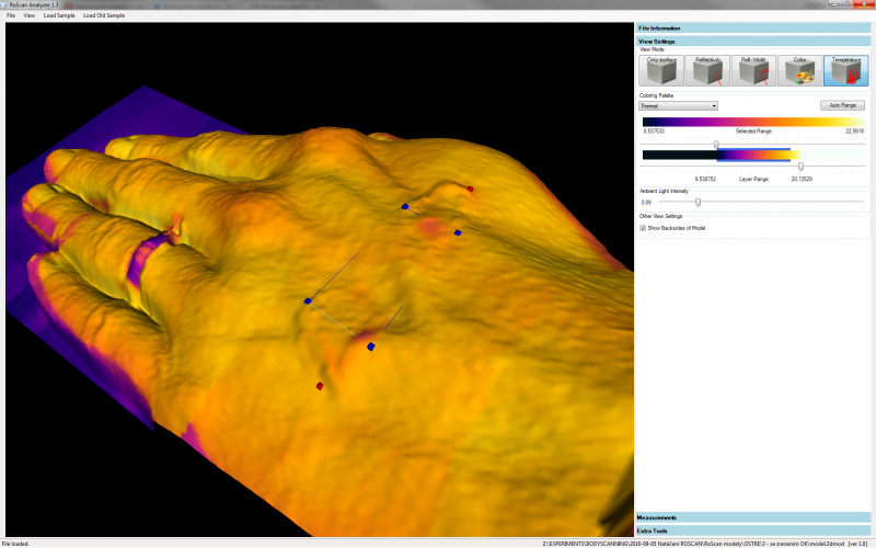 Pane doktore, můžete svoje zařízení jednoduše popsat? RoScan je sám o sobě robotický 3D skener, tudíž jeho funkcí je nasnímat objekt z reálného světa a vytvořit z něho počítačový model, který si můžeme virtuálně prohlížet, lze ho otáčet apod. Samotná možnost přenosu objektu z reálného do počítačového světa není až tak výjimečná, protože komerční 3D skenery jsou v dnešní době již poměrně rozšířené v různých odvětvích průmyslu. Co je však na RoScanu zajímavé, je jeho neobvyklá konstituce, termovizní vrstva, a zejména pak jeho víceúčelová aplikace.