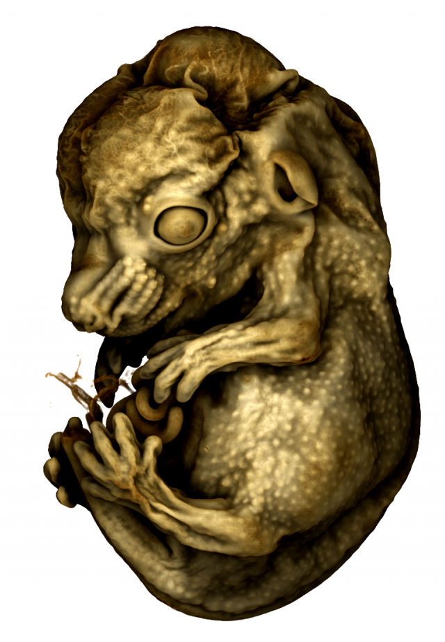 K výzkumu se zatím využívají embrya myší | Autor: archiv CEITECHlavním úkolem českých vědců je nasnímat embrya myší, která dostávají z Vídně nebo Švédska. Ta jsou už většinou nabarvená například roztokem těžkých kovů, aby se zvýšil kontrast. Některé z nich jsou v přirozeném stavu, jiné geneticky modifikované. „Po naskenování jednotlivé snímky rekonstruujeme a segmentujeme. Segmentace musí probíhat částečně manuálně, protože ještě nemáme tak pokročilé metody. Trvá to třeba i několik desítek hodin. Získáme tak 3D obraz kosti a měkké tkáně. Poté se pokračuje v analýze a vytváří se modelace,“ vysvětlil Kaiser. Na dalších odbornících, zejména z oblasti biologie a medicíny, pak je zasadit výsledky do celkového kontextu a vyvodit závěry. „Plánujeme i nadále pokračovat v tomto projektu a znalosti prohlubovat tak, abychom získávali stále přesnější informace. Výhledově chceme výzkum rozšířit i o jiné živočichy,“ dodal vědec.