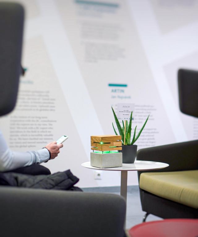 O tehdejším projektu Farmium se dočetla společnost nabízející zeleň do kanceláří. „Navázali jsme spolupráci a vyvinuli například vlhkoměry a hlídání závlahy pro zelené stěny. Spolu s tím jsme se dostali i k tématu kvality ovzduší v kancelářích a zjistili, že je to problém, který mají firmy zájem řešit,“ popsal Janoušek.