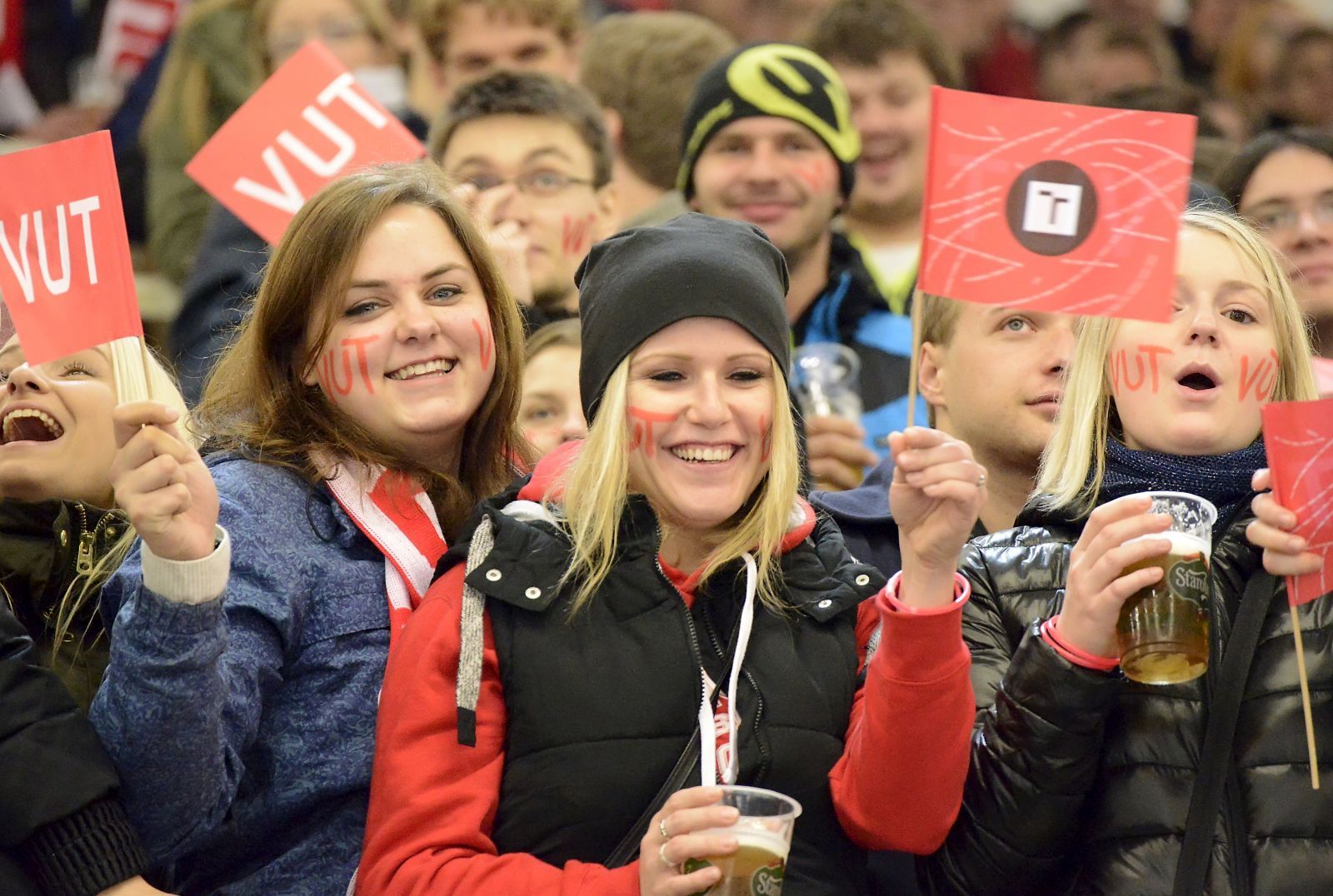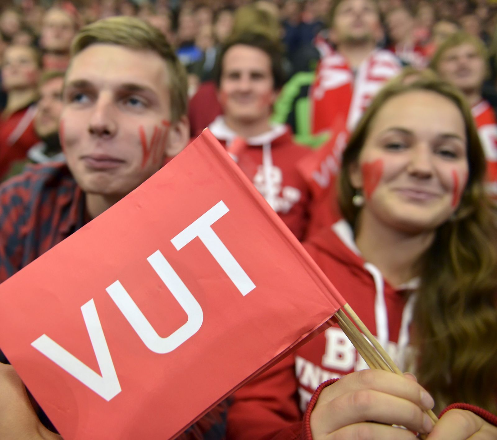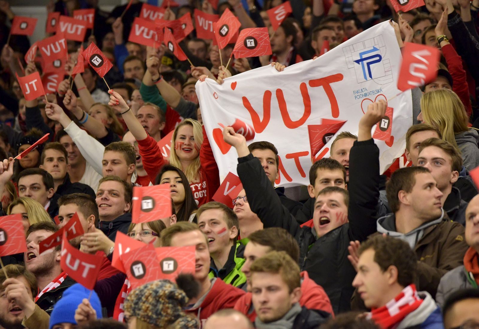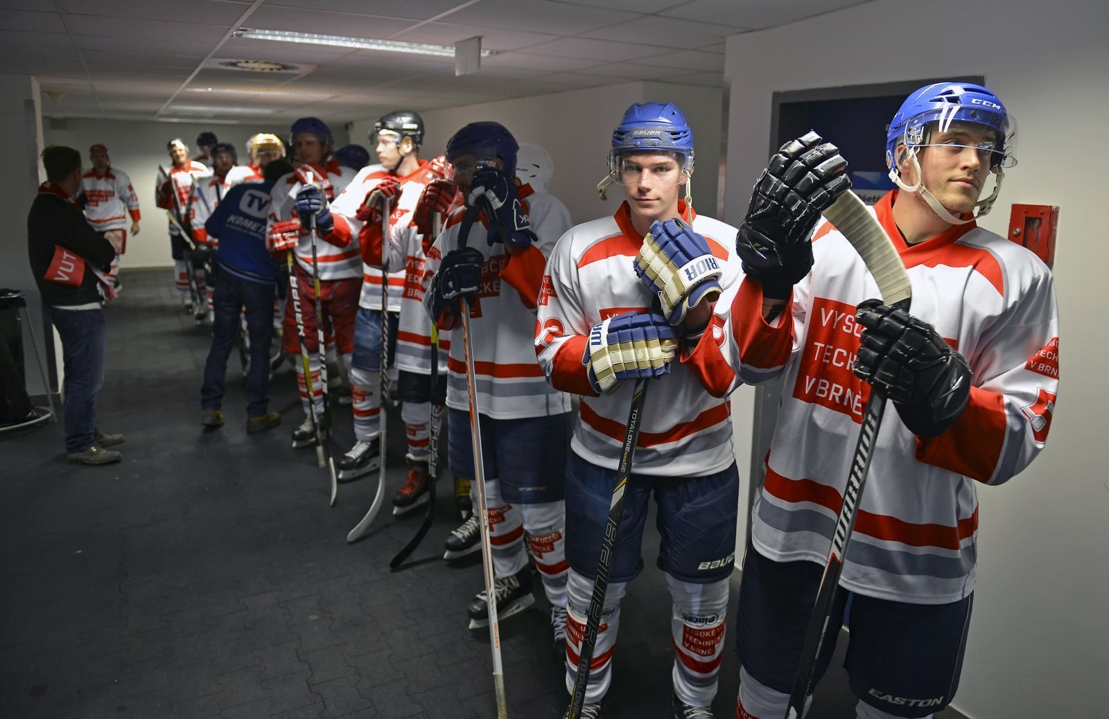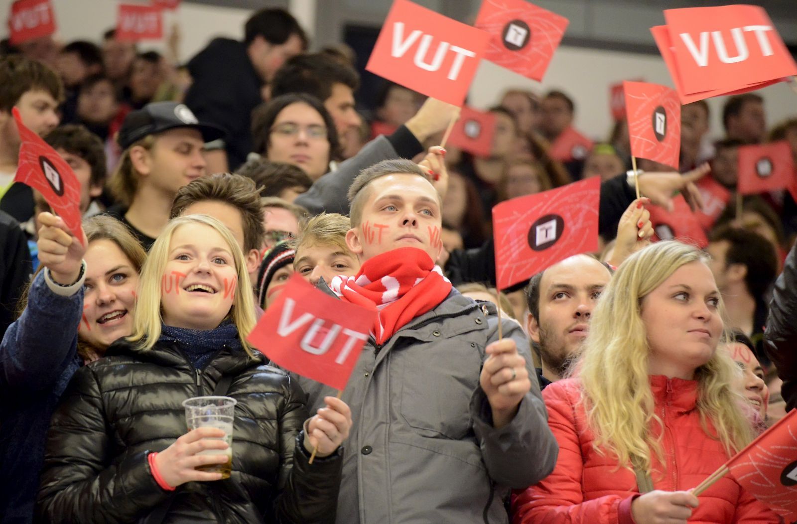 VUT - Brno - VUT - Brno! Stovky studentů z tribuny unisono odpovídaly rudému kotli VUT na vypjatém Hokejovém souboji univerzit. Brněnská DRFG aréna, bývalé Rondo, hlásila 9. listopadu vyprodáno. Na 7. ročník populárního utkání dvou největších brněnských univerzit přišlo 7 700 fanoušků. I když VUT nakonec opouštělo led v roli poraženého, bylo nás slyšet! Atmosféru zápasu zachytil fotograf Igor Šefr.