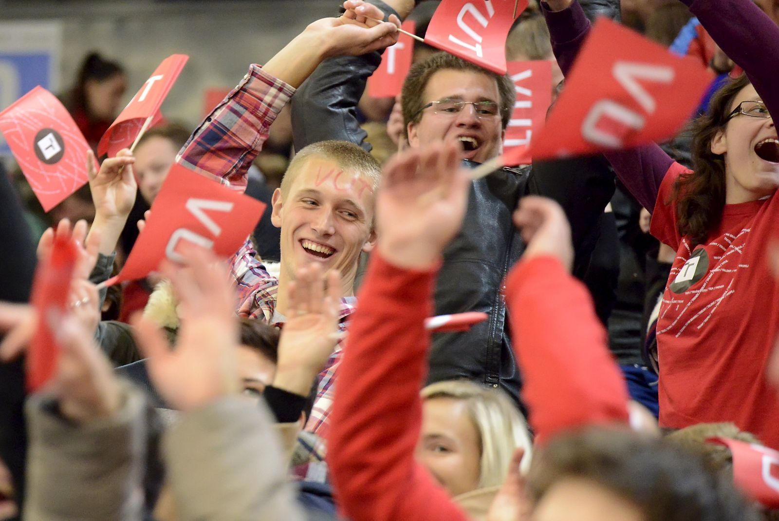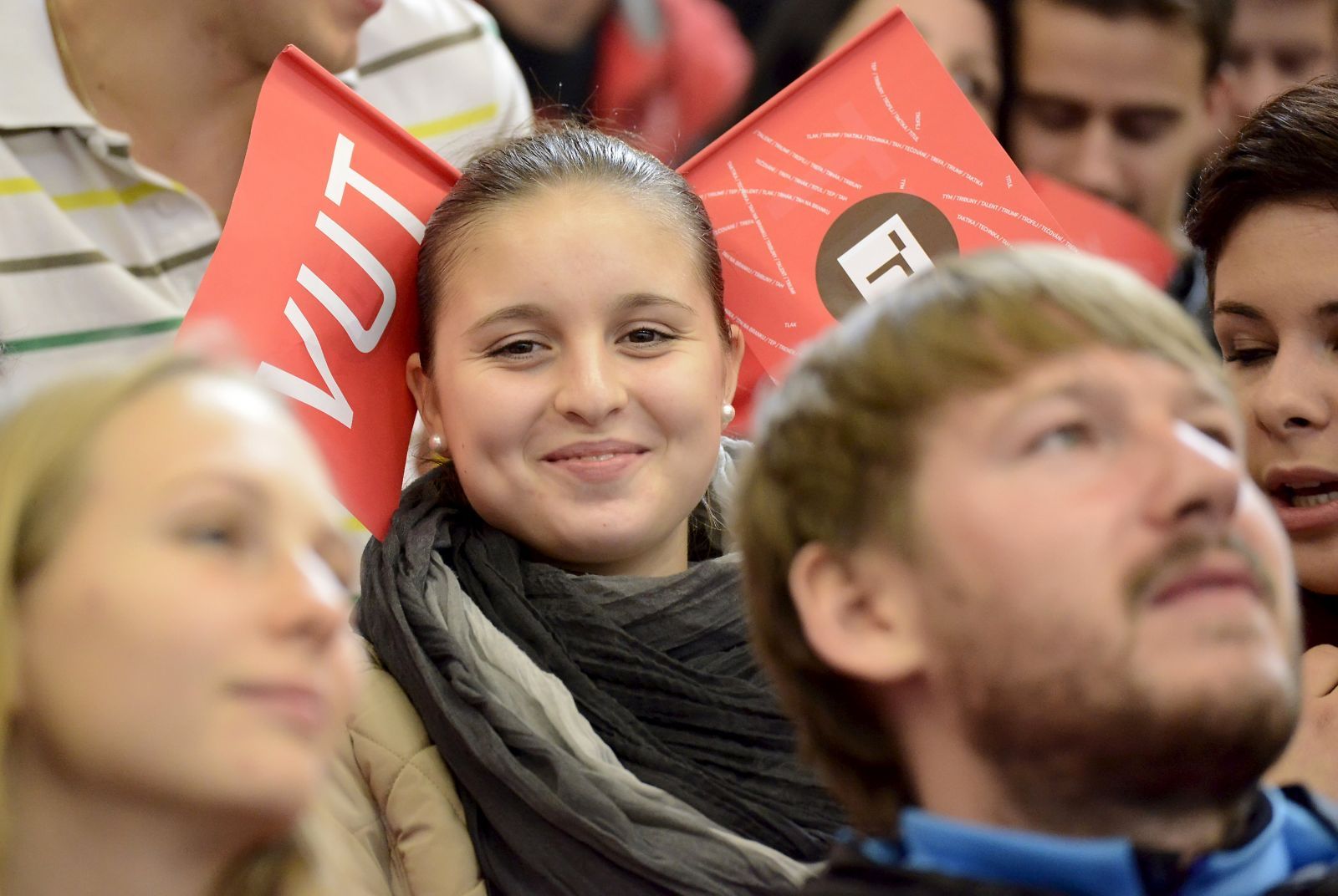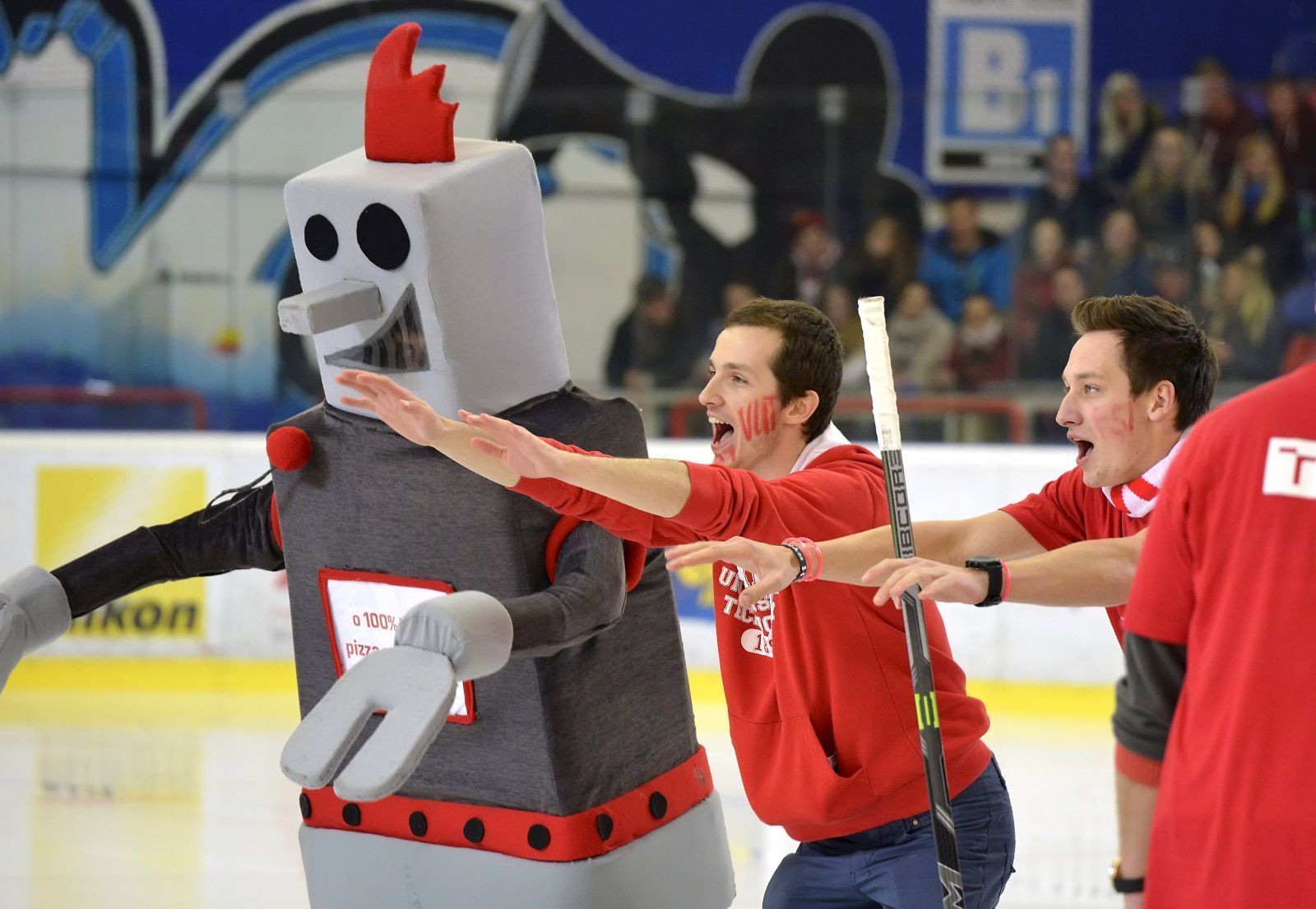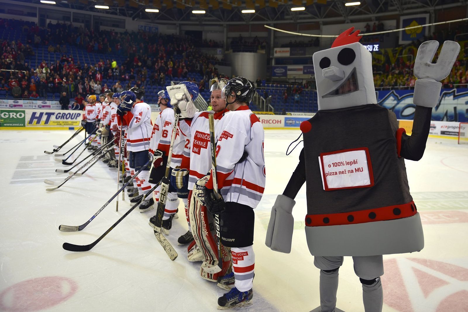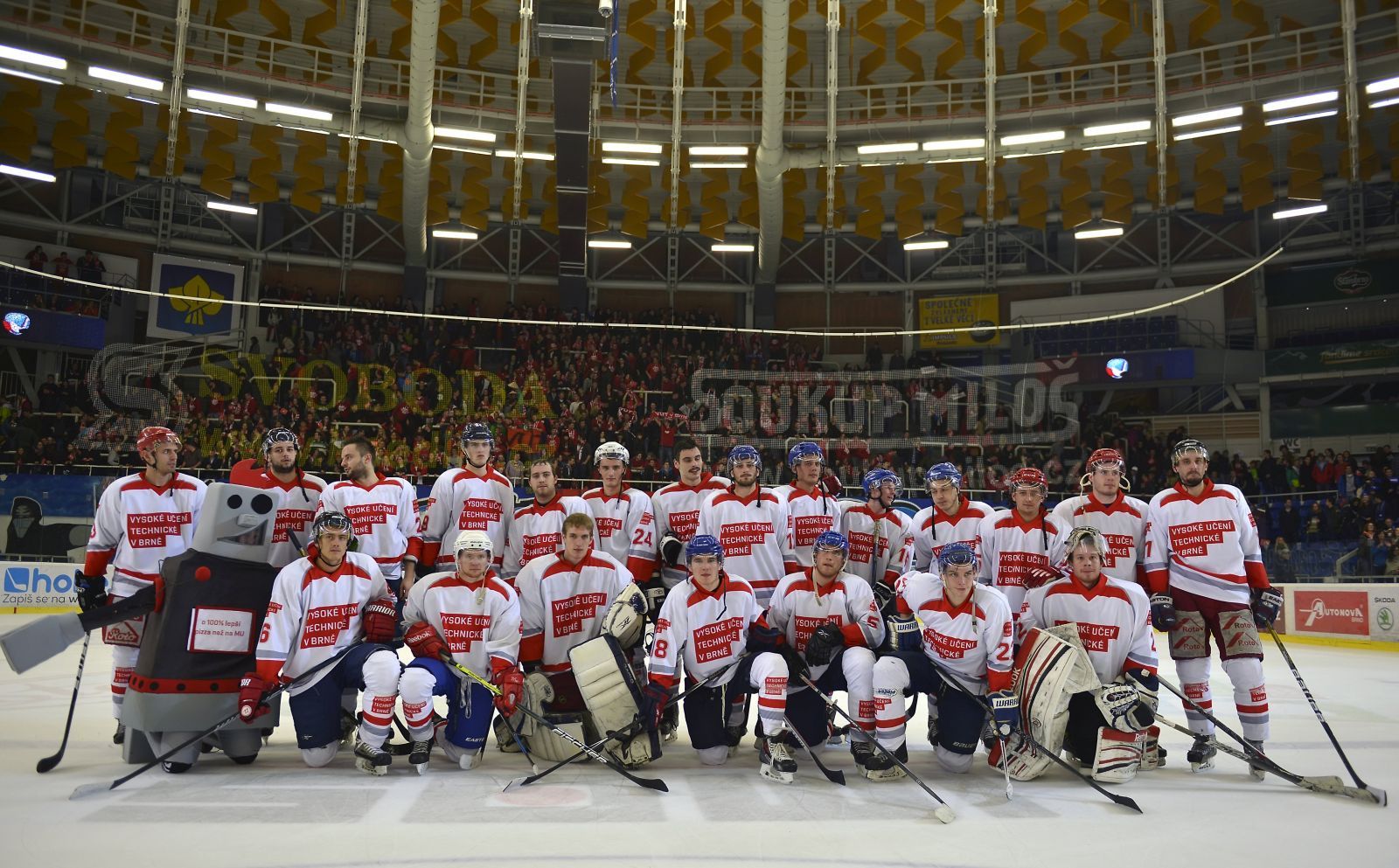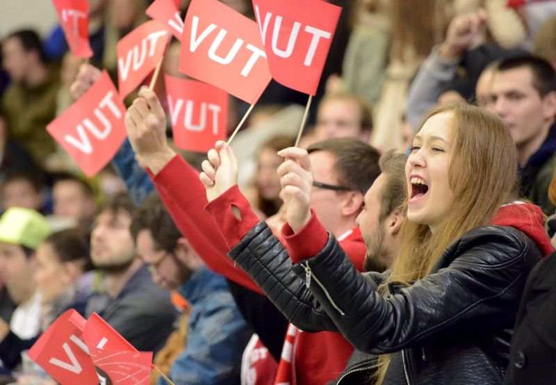 VUT - Brno - VUT - Brno! Stovky studentů z tribuny unisono odpovídaly rudému kotli VUT na vypjatém Hokejovém souboji univerzit. Brněnská DRFG aréna, bývalé Rondo, hlásila 9. listopadu vyprodáno. Na 7. ročník populárního utkání dvou největších brněnských univerzit přišlo 7 700 fanoušků. I když VUT nakonec opouštělo led v roli poraženého, bylo nás slyšet! Atmosféru zápasu zachytil fotograf Igor Šefr.