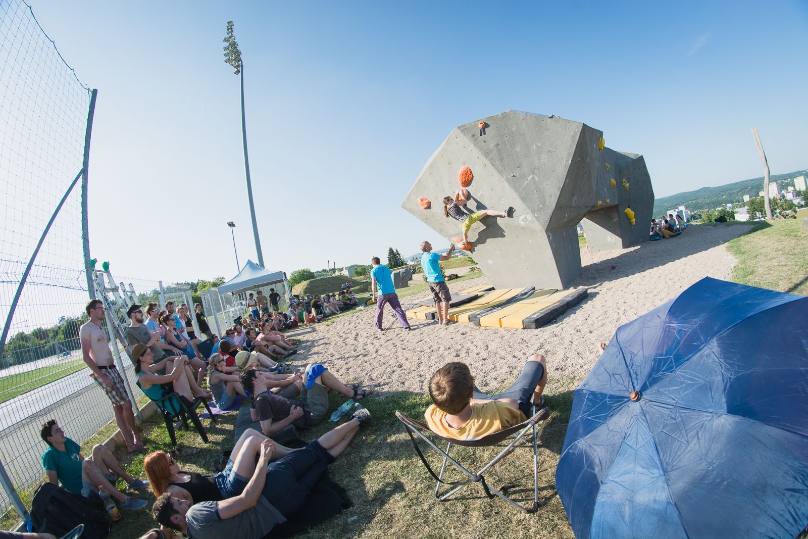 V prvním kole flash, v druhém on-sight. Že nevíte, o čem je řeč? Přece o boulderingu. Stále nic? O lezení na stěnu. V sobotu se v areálu pod Palackého vrchem konal 2. ročník Boulder Open Air, závodu na venkovních profilech. Zúčastnilo se ho devětasedmdesát sportovců, třiadvacet žen a šestapadesát mužů. „Při kvalifikaci lezli kluci i holky systémem flash, to znamená, že mohli sledovat, jak daný boulder, kterých bylo celkem třináct, lezou ostatní,“ vysvětlila organizátorka akce z univerzitního Centra sportovních aktivit Tereza Píšová.