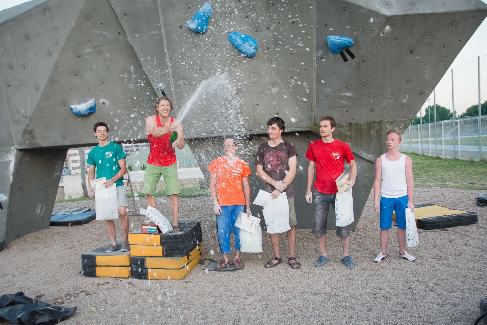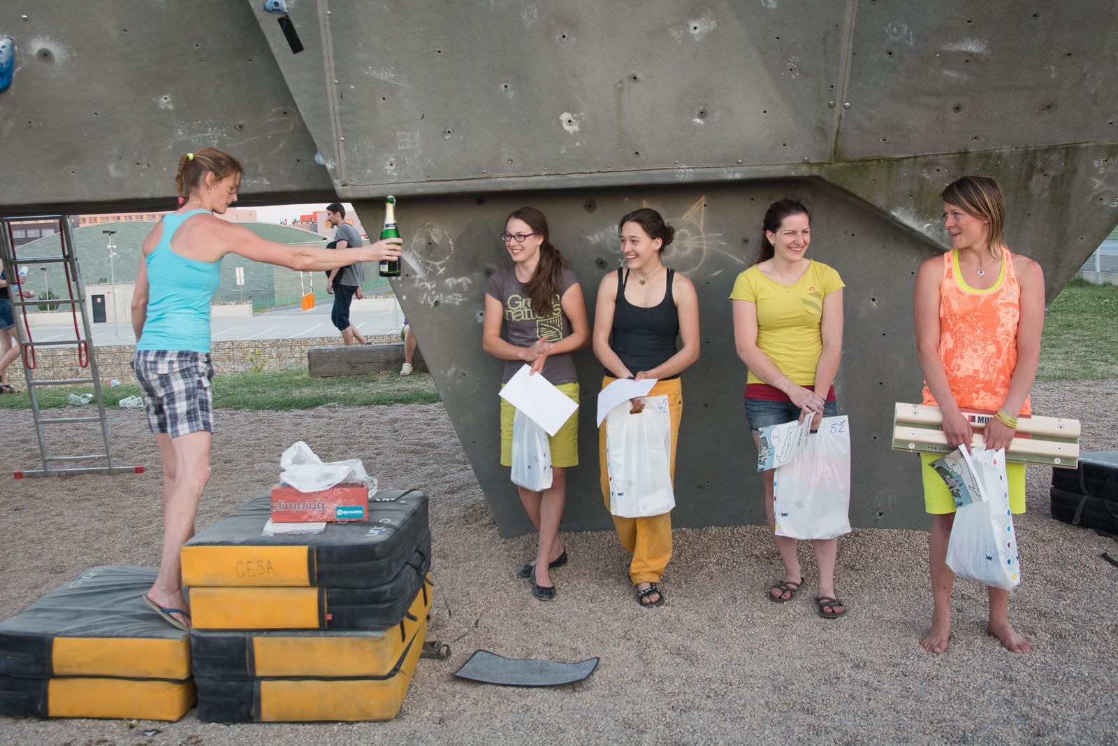 Do večerního finále postoupilo šest mužů a sedm žen, protože šestá a sedmá dosáhly stejného výsledku. Pro ženy nachystali stavěči čtyři složité bouldery, na které měly lezkyně tři pokusy. „Finále se už lezlo stylem on-sight, takže závodníci nemohli sledovat, jak boulder řeší ostatní finalisté. Museli si cestu vymyslet sami,“ podotkla Píšová. Se třemi přelezenými bouldery, tedy topy, na čtyři pokusy zvítězila Petra Růžičková, druhá skončila Věra Kostruhová, která na tři bouldery potřebovala pět pokusů, a třetí byla Eliška Vlčková se dvěma topy. Ve finále mužů vyhrál se dvěma topy na tři pokusy slovenský Tomaso Greksák, druhý skončil Vladimír Střílek, ten dal dva topy na čtyři pokusy, a třetí místo obsadil Vilda Chejn s jedním topem. (kat)