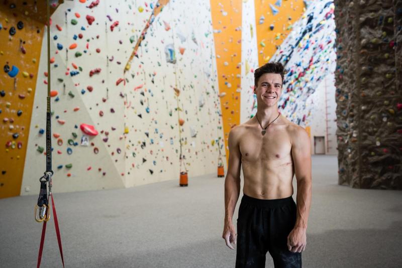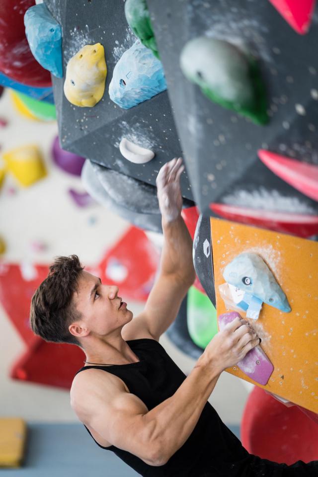 Šimon Potůček se věnuje primárně lezení na obtížnost, trénuje ale i bouldering (na fotce). | Autor: Jan Prokopius