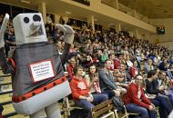 Vyrovnaný florbalový zápas mezi VUT a Masarykovou univerzitou s napětím sledovaly stovky diváků. Hala Vodova hostila 28. dubna už čtvrtý Florbalový souboj univerzit, ve kterém tentokrát zvítězil tým v modrých dresech. Přestože v první třetině vedlo VUT 4:1, náskok brněnské techniky hráči MU postupně snižovali. Na konci hracího času se oba týmy dostaly na remízu 7:7, o konečném vítězství tak musely rozhodnout samostatné nájezdy. V nich se více dařilo studentům Masarykovy univerzity, takže VUT z palubovky odcházelo po těsné prohře. Že se jedná o vyrovnané soupeře dokazuje i celková bilance dosavadních florbalových soubojů: VUT a MU v nich mají shodně po dvou vítězstvích. Atmosféru univerzitního klání zachytil fotograf Igor Šefr.