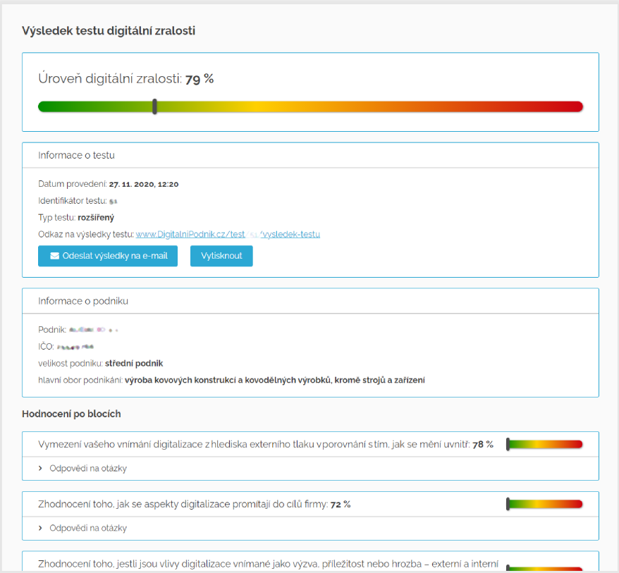 Testování pomohlo zmapovat terén na národní úrovni a vytvořit benchmarking podniků podle úrovně digitální zralosti v rámci celých odvětví. Data do testování poskytlo téměř 1000 MSP. Výsledkem bylo 779 úplně dokončených testů, z toho 596 základních testů s průměrnou úrovní digitální zralosti 50 % a 183 rozšířených s průměrnou zralostí 63 %. V základní verzi testu dosáhlo nejvyšší úroveň zralosti ICT odvětví, v rozšířené verzi pocházely nejúspěšnější MSP z odvětví kovových konstrukcí a kovodělných výrobků. V testovacím balíku byly nejčastěji zastoupeny podniky z odvětví ICT, velkoobchodu a strojírenské výroby.