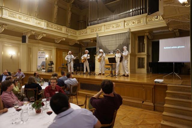 Skupina mladých vědců a doktorandů z CEITEC VUT a Ústavu fyzikálního inženýrství FSI VUT vystoupila s velkým úspěchem na konferenční večeři | Autor: archiv Tomáše Šikoly