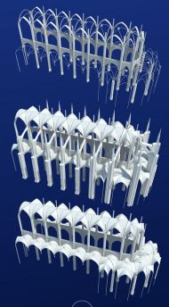 Návštěvníci výstavy, která nese název Karel IV. – sakrální architektura, si mohou prohlédnout jak fyzické modely významných památek z papíru, tak grafické 3D vizualizace staveb. „Struktivní modely jsou to první, s čím se studenti ve výuce po nástupu na fakultu setkávají. Vybírají si stavbu z historie či současnosti, musí ji důkladně prostudovat a pak tvoří vlastní návrh z papíru. Je to náročná práce na mnoho hodin, protože papír má své limity,“ přiblížil práci studentů děkan Fakulty architektury Jan Hrubý. K vidění je přes dvacet modelů známých kostelů, chrámů a kaplí, které vytvořili posluchači prvního ročníku.