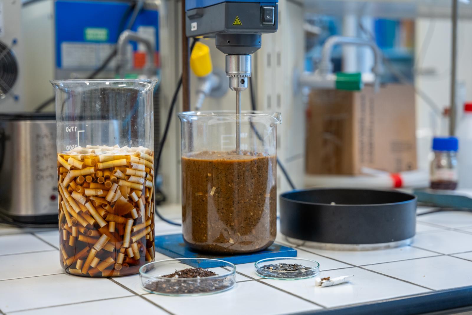 V roce 2022 proto firma Philip Morris odstartovala sběr těchto náplní přímo ve svých prodejnách. Ty pak putují ze sběrných boxů do laboratoří několika výzkumných pracovišť i soukromých firem, kde chemici a technologové zkoumají další využití. Výzvou je dokonalé vyčištění acetátu celulózy od cigaretového odéru | Autor: Václav Koníček