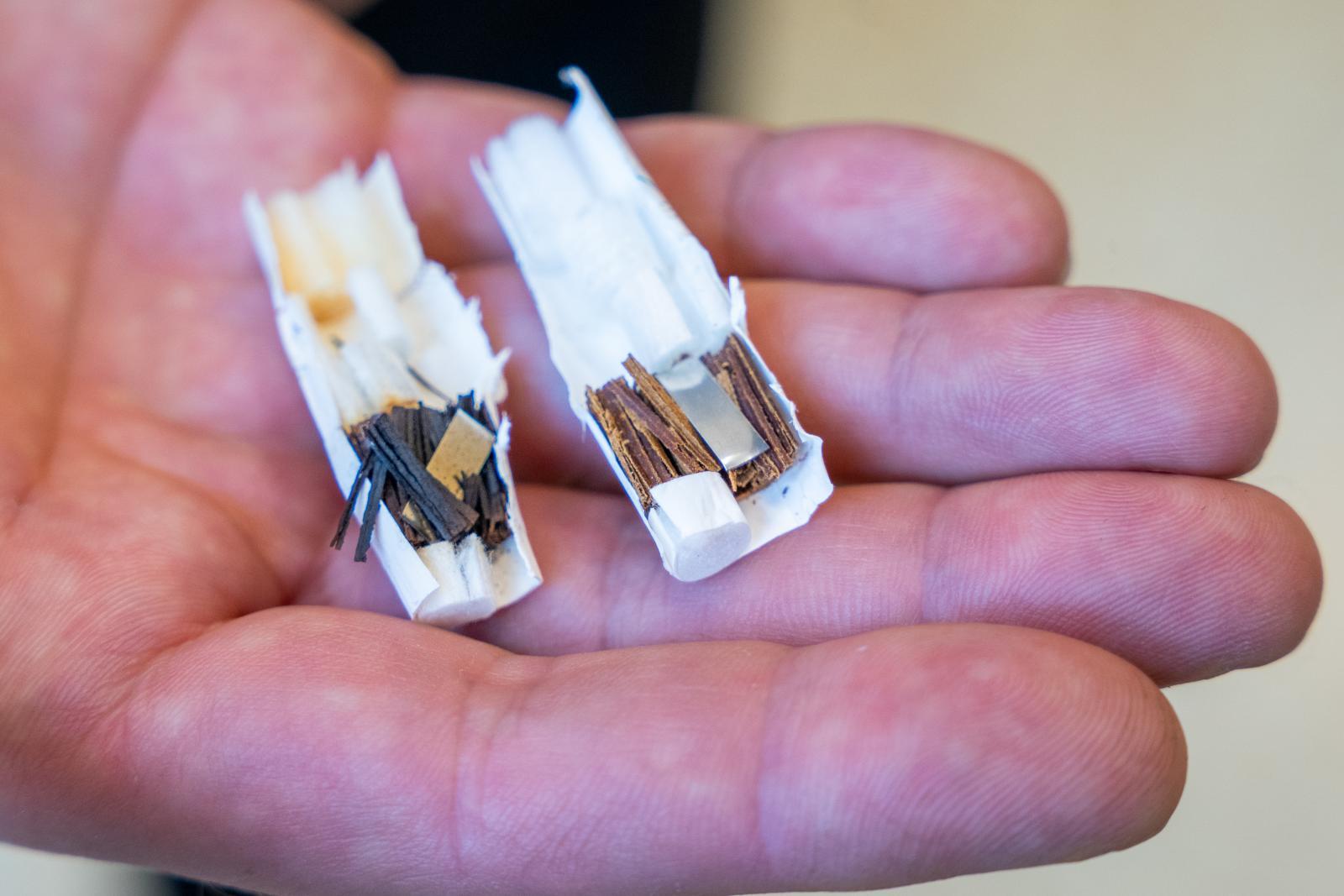 „Náplně kromě tabáku ve formě tabákového papíru obsahují cigaretový papír, nerezový plíšek, některé také filtr z PLA, ale především acetát celulózy – bioplast, který má zajímavé vlastnosti. V případě vhodně zvolené recyklační technologie je z něj možné znovu vyrobit stejné cigaretové filtry nebo vlákna se širokými možnostmi aplikací,“ vysvětluje Radek Přikryl z Ústavu chemie materiálů na FCH VUT.