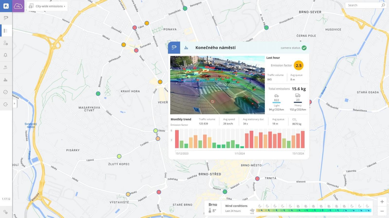 Jak se auta ve městě pohybují, umí říci zmíněný software DataFromSky. Právě na něm nyní výzkumníci staví novou funkci týkající se emisí. Cílem je vyvinout systém pro nepřímou identifikaci produkce výfukových a nevýfukových emisí dopravy v reálném čase. Podkladem bude kombinace detailních dopravních dat, morfologie terénu a pokročilých emisních modelů. S analýzou dopravního proudu pomohou metody počítačového vidění a umělé inteligence, tato data z provozu pak budou tvořit jeden ze vstupů do zpřesněných modelů pro reálné emise oxidu uhličitého, oxidů dusíku a pevných částic, příslušných jednotlivým projíždějícím autům.