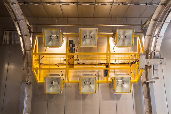 Umělé slunce se může pohybovat nad vozidlem a simulovat skutečné sluneční záření | Autor: archiv FSI Klimatická komora vznikla se záměrem testovat tepelný komfort v kabinách vozidel a jejich klimatickou odolnost. V tomto ohledu asi nepřekvapí, že výzkum a zakázky pro automobilový průmysl jsou dodnes stěžejní. „Nejsilnější spolupráci máme se Škoda Auto a Volkswagenem, spolupracujeme ale i s dalšími firmami, náš záběr je poměrně široký,“ říká výzkumnice Barbora Kopečková z dnes už téměř desetičlenného týmu.