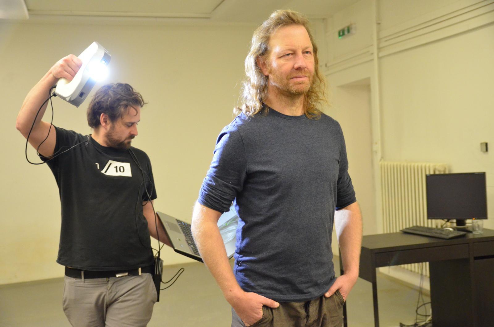 Jiří Pec zkouší skenovat Tomáše Medka stejným způsobem jako Vimperskou madonu. | Autor: Tereza Kadrnožková