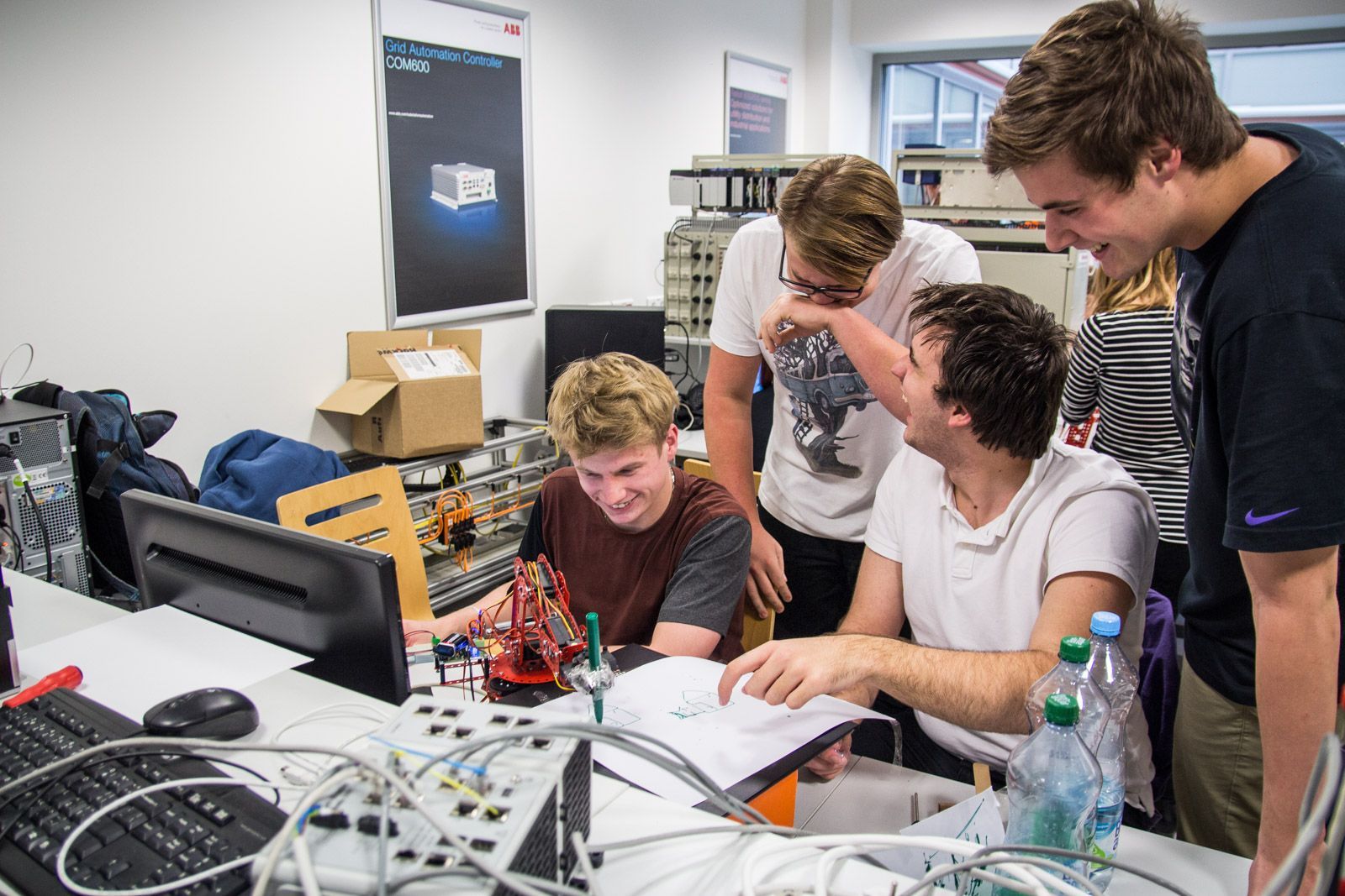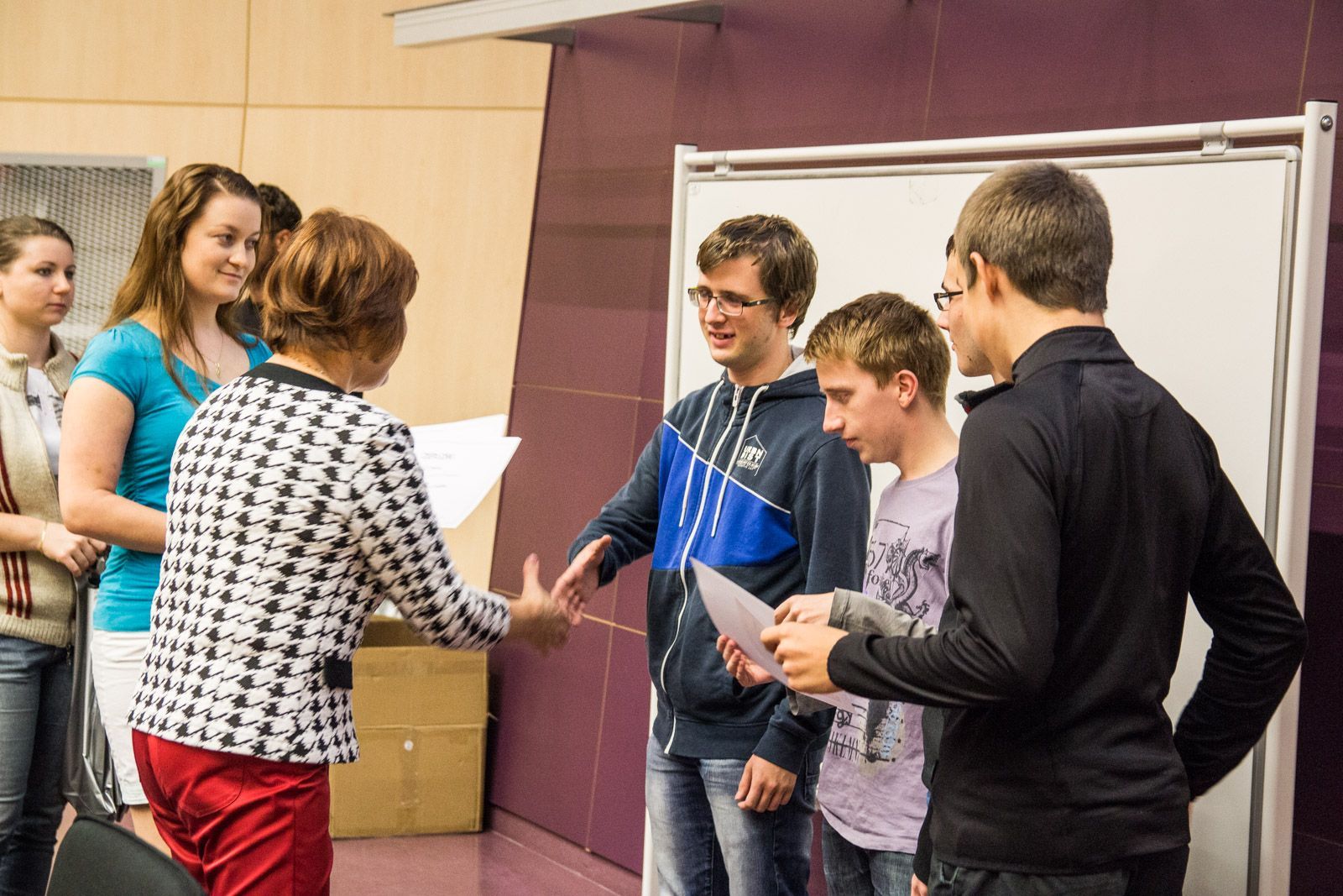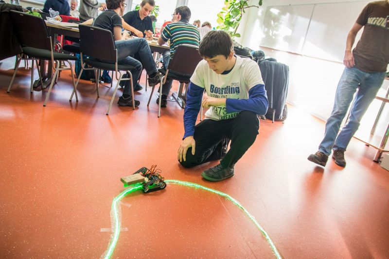 Po oficiálním zahájení se jednotlivé týmy přesunuly do učeben podle toho, jaké zadání si zvolily. Zatímco některé skupiny si jednoznačně rozdělily role už před začátkem celé soutěže (konstruktér, programátor, elektrotechnik), jiné týmy se teprve na místě rozhodují, kdo se bude věnovat jakému úkolu. Před desátou už začínají studenti dávat dohromady první součásti jednotlivých zařízení. "Jsou to funkční týmy, které spolupracují. Na těch studentech je i později vidět, že už mají nějaké zkušenosti," zhodnotil předpoklady jednotlivých soutěžících proděkan Jiří Háze.