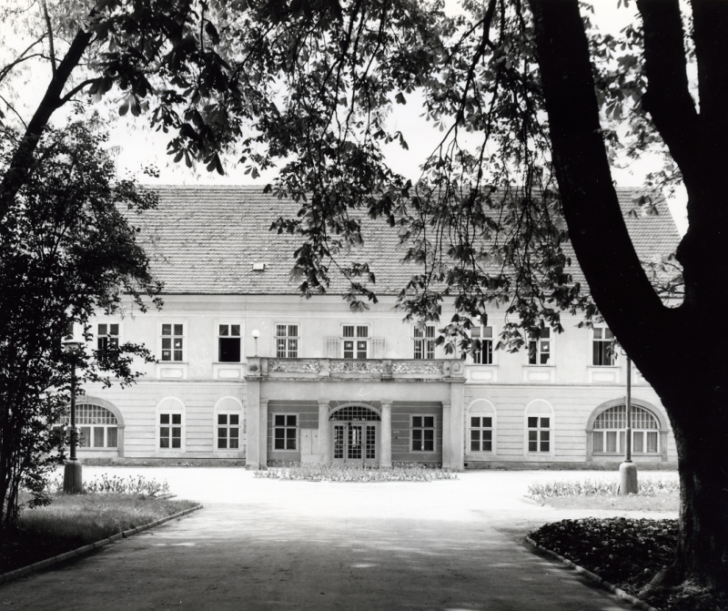 Pohled na průčelí Bauerova zámečku v Brně po připojení budovy k areálu brněnského výstaviště, 50. léta 20. století | Autor: Fotoarchiv NPÚ ÚOP v Brně, neg. č. 9357