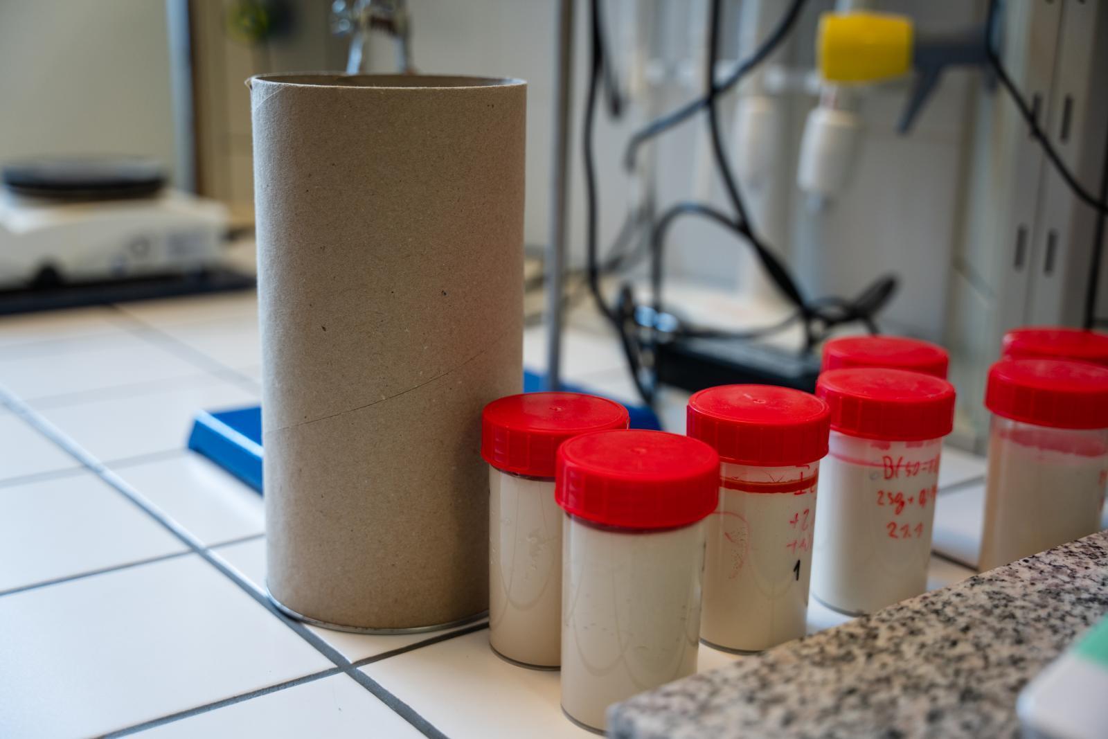 Jednou z největších výzev při vývoji lepidel nové generace je dosažení požadované elasticity spoje. Tato vlastnost je klíčová zejména při výrobě tenkostěnných papírových trubic a ověřuje se přímo v provozu u zákazníka – v laboratorních podmínkách ji totiž nelze zcela nasimulovat. „Je důležité vnímat rozdíly mezi laboratorním měřítkem a poloprovozem. Není to tak, že něco jen x-krát vynásobíte,“ vysvětluje vědecký pracovník Jan Hajzler. Tomáš Solný dodává: „Chování směsi v laboratoři a ve větším množství – třeba 150 nebo 1 500 kilo – je úplně jiné a může nás zaskočit.“
