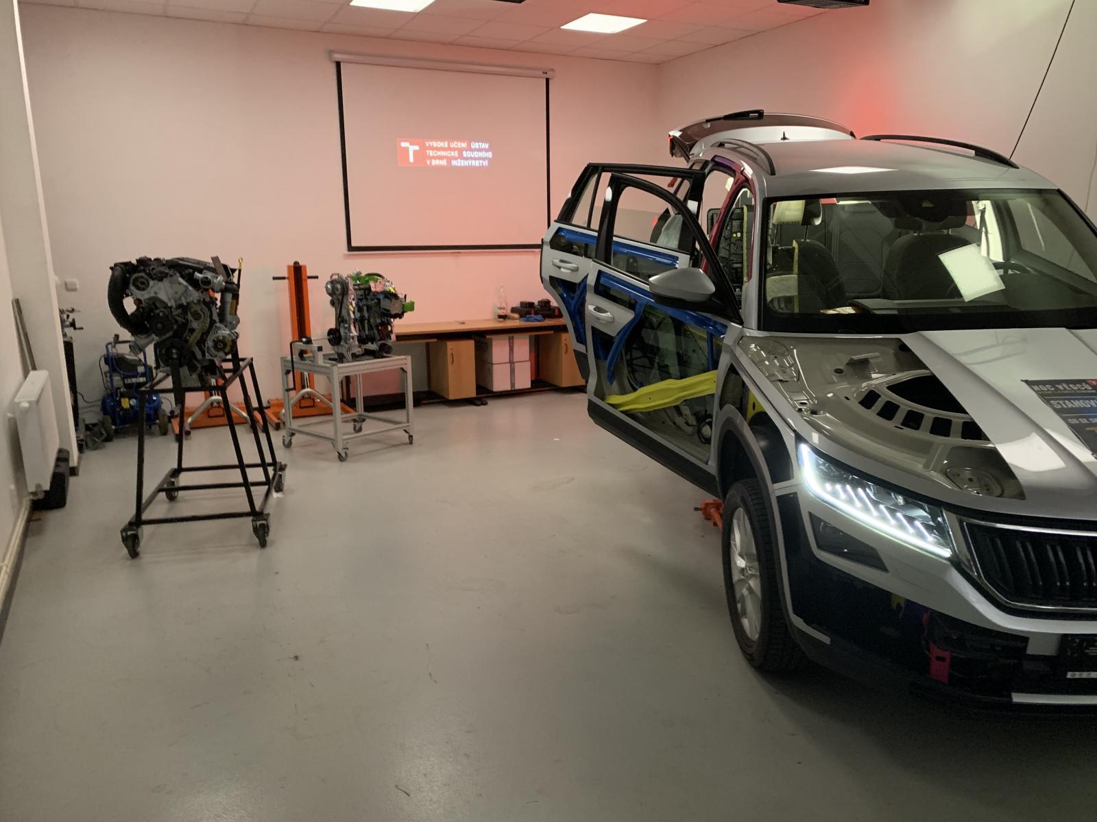 Odstrojování vozu se ujala firma vyrábějící technické modely. Celý proces trval téměř rok a úkolem bylo rozřezat automobil takovým způsobem, aby mohl sloužit jako výuková pomůcka, a přesto zůstal stále pojízdný. „Jednotlivé konstrukční prvky jsou pro snazší orientaci studentů nabarveny odlišnými barvami. Oranžovou jsou označeny airbagy a s nimi propojené snímače. Modré plechy zase znamenají výztuhy, které se při nehodě deformují řízeným způsobem. Do vozidla jsme nechali také namontovat tlačítko, které dokáže simulovat závadu, a úkolem studentů je ji správně diagnostikovat,“ dodal Bilík. Odstrojování vozu Škoda Kodiaq trvalo téměř rok | Autor: Archiv Ústavu soudního inženýrství Auto má prořezanou nejen vnější, ale i vnitřní interiérovou část. „Třeba na odkryté sedačce si studenti mohou detailně prohlédnout, jak je zkonstruována. Jaký má rám, kde je schovaný airbag, topení nebo čidla,“ popsal Bilík. Kromě konstrukčních částí mohou studenti vidět i technický řez motoru a převodovky, které se do tohoto vozidla montují.