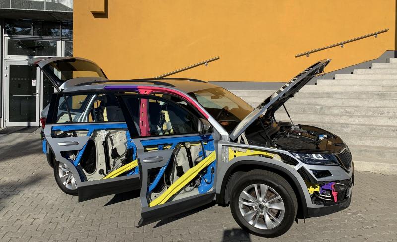 „Pod kapotu nebo lépe řečeno pod plechy se podíváte málokdy. Možná při dopravní nehodě nebo v autoservisu, a to vždy jen do některých částí. Proto jsme nechali provést podélný řez vozidlem – od kapoty až po kufr. Nemusíme teď studentům vše ukazovat jen na obrázcích a vizualizacích, ale mohou si udělat reálnou představu – co kde je a proč,“ vysvětlil Martin Bilík z ÚSI. Ve voze Škoda Kodiaq, který byl na trh uveden před třemi lety, je částečně odkryta karoserie a jsou barevně zvýrazněny bezpečnostní asistenční systémy, řídicí jednotky či deformační výztuhy.