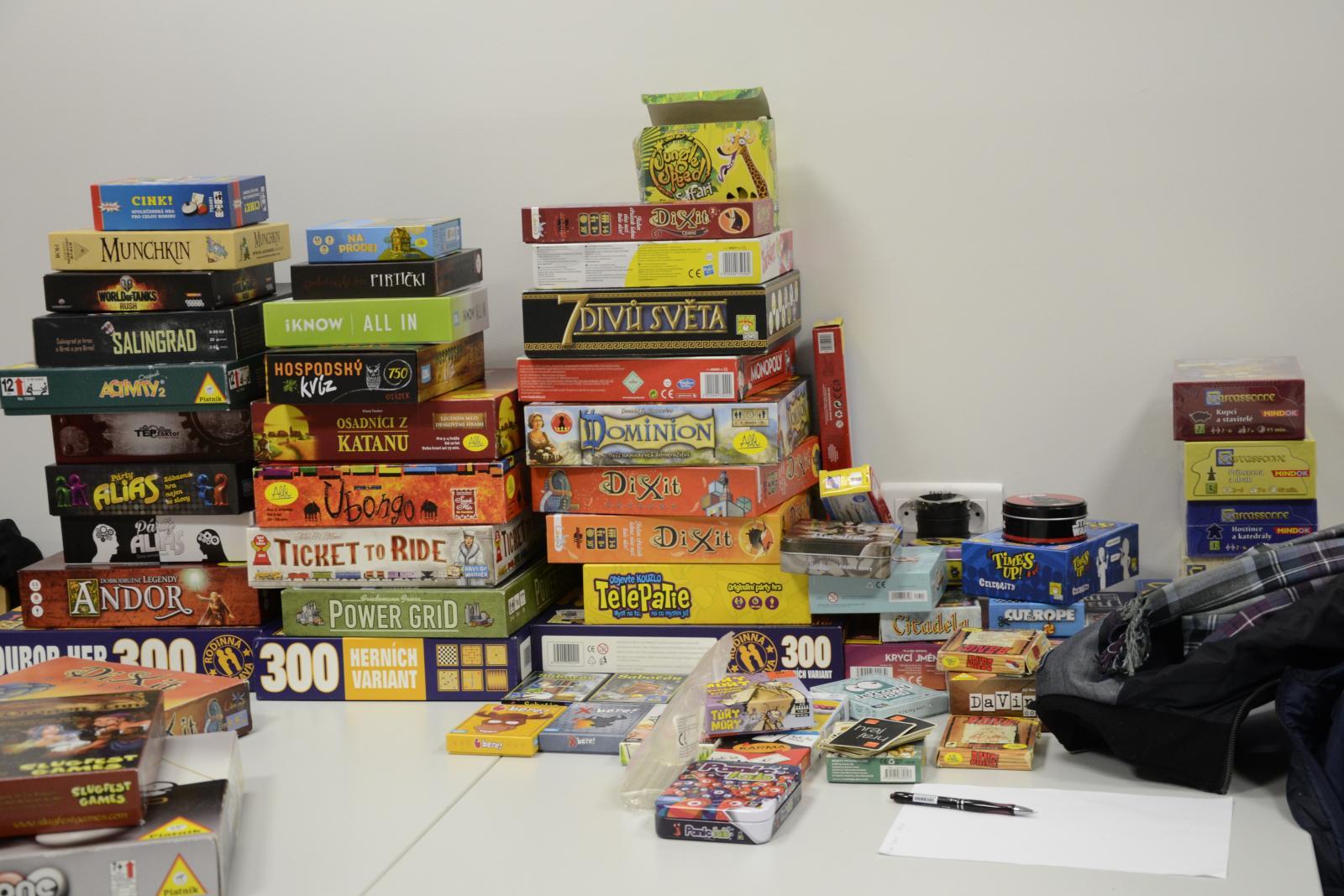 Herna na elektrofakultě vznikla před čtyřmi lety díky podpoře z Interního fondu studentských projektů. „Koupili jsme velký fotbálek a pár menších her. V té době jsme jich měli 23,“ uvedla Kateřina Chroustovská ze spolku Studenti pro studenty, který má na fakultě hernu na starosti. Po třech letech spolek požádal opět o finanční podporu a mohl sbírku doplnit o další oblíbené tituly. Nyní si mohou zájemci vybrat asi ze šedesátky různých her, k některým z nich jsou i rozšíření.