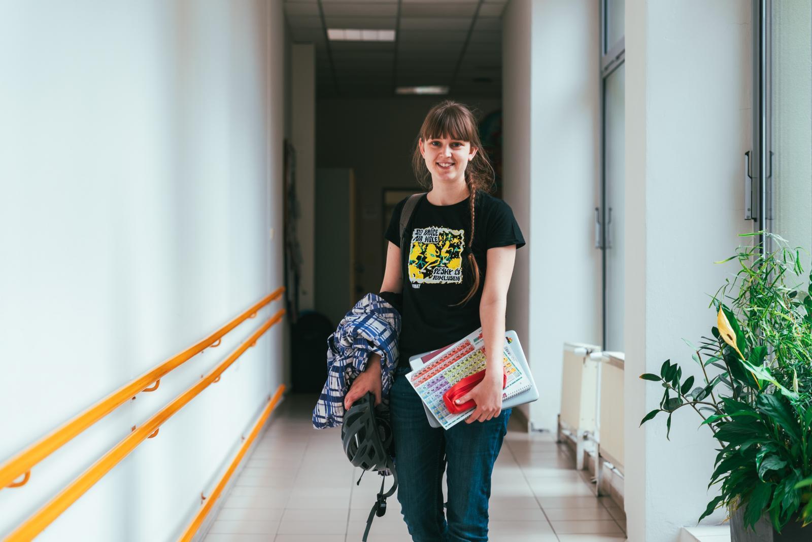 Moje studium v Brně se zaměřuje na technologie řešící problémy životního prostředí – například nakládání s odpady, čištění vody nebo radioekologii. Zvlášť zajímavá je pro mě výuka jaderné chemie. Je to všechno nové a za krátkou dobu jsem se hodně naučila.