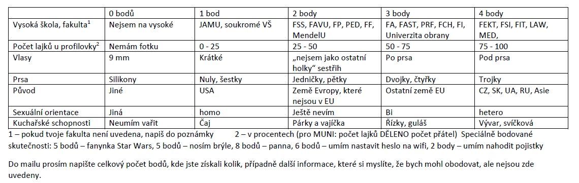 Protože jde o velmi lákavý program, vytvořil jsem speciální hodnotící tabulku. Stačí si spočítat celkový počet bodů a poslat mi ho na mail: valentyn2k16@gmail.com.