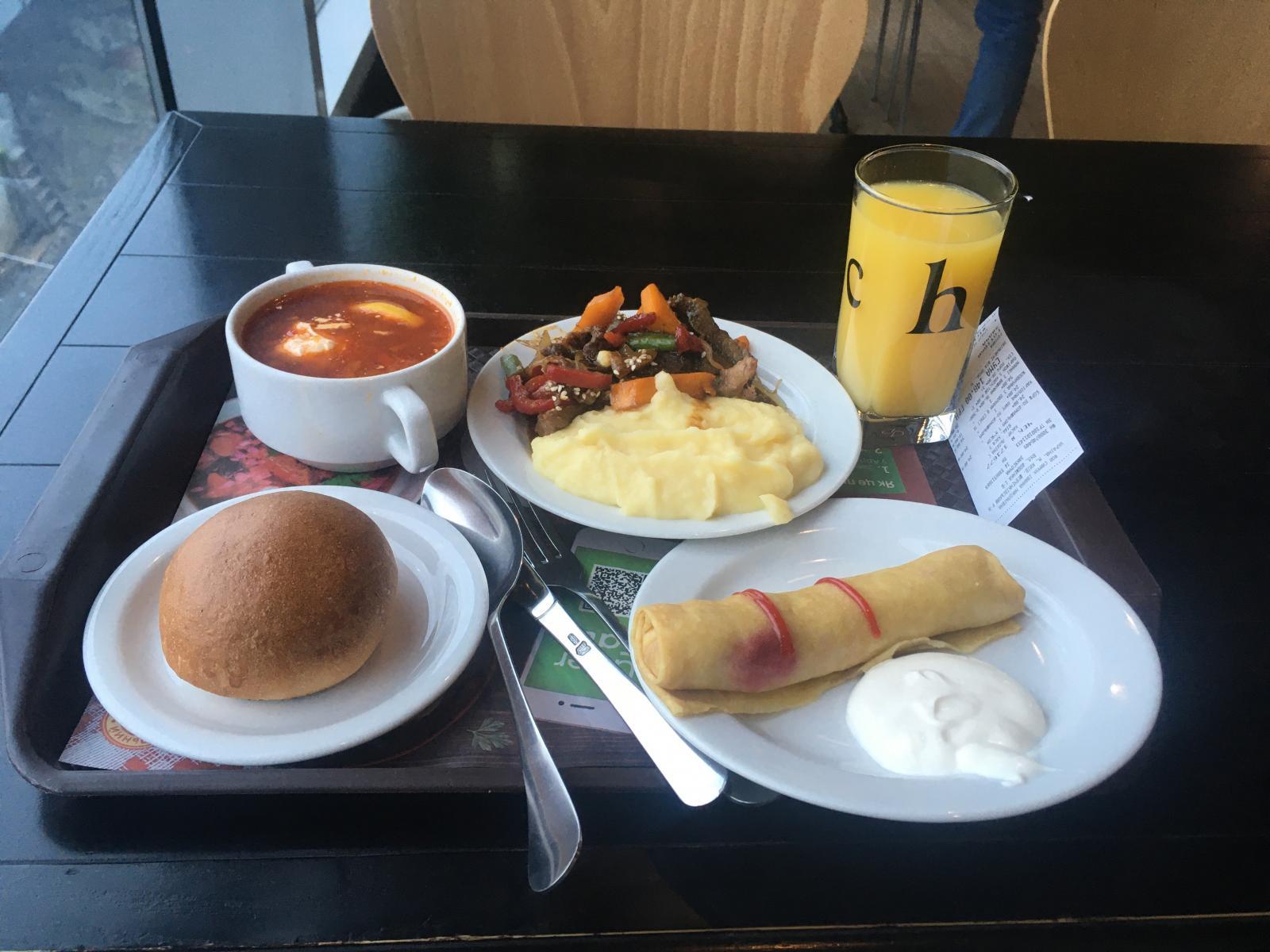Tradičním ukrajinským jídlem je zajisté boršč. | Autor: Lukáš PodešvaTřešničkou na dortu mého prvního dne bylo, když mě Julie vzala na jídlo do místní sítě jídelen Puzata Hata, která byla vzdálená jen kousek od mých kolejí. Po cestě mi ještě ukázal vstup na metro a vysvětlila, jak se dostanu na fakultu. Jídelna byla zaměřena na tradiční ukrajinskou kuchyni, jídlo bylo fantastické a samozřejmě nesměl chybět boršč! Doteď vzpomínám na tento nečekaně příjemný zážitek s místní kuchyní, který jsem si zde pravidelně dopřával.