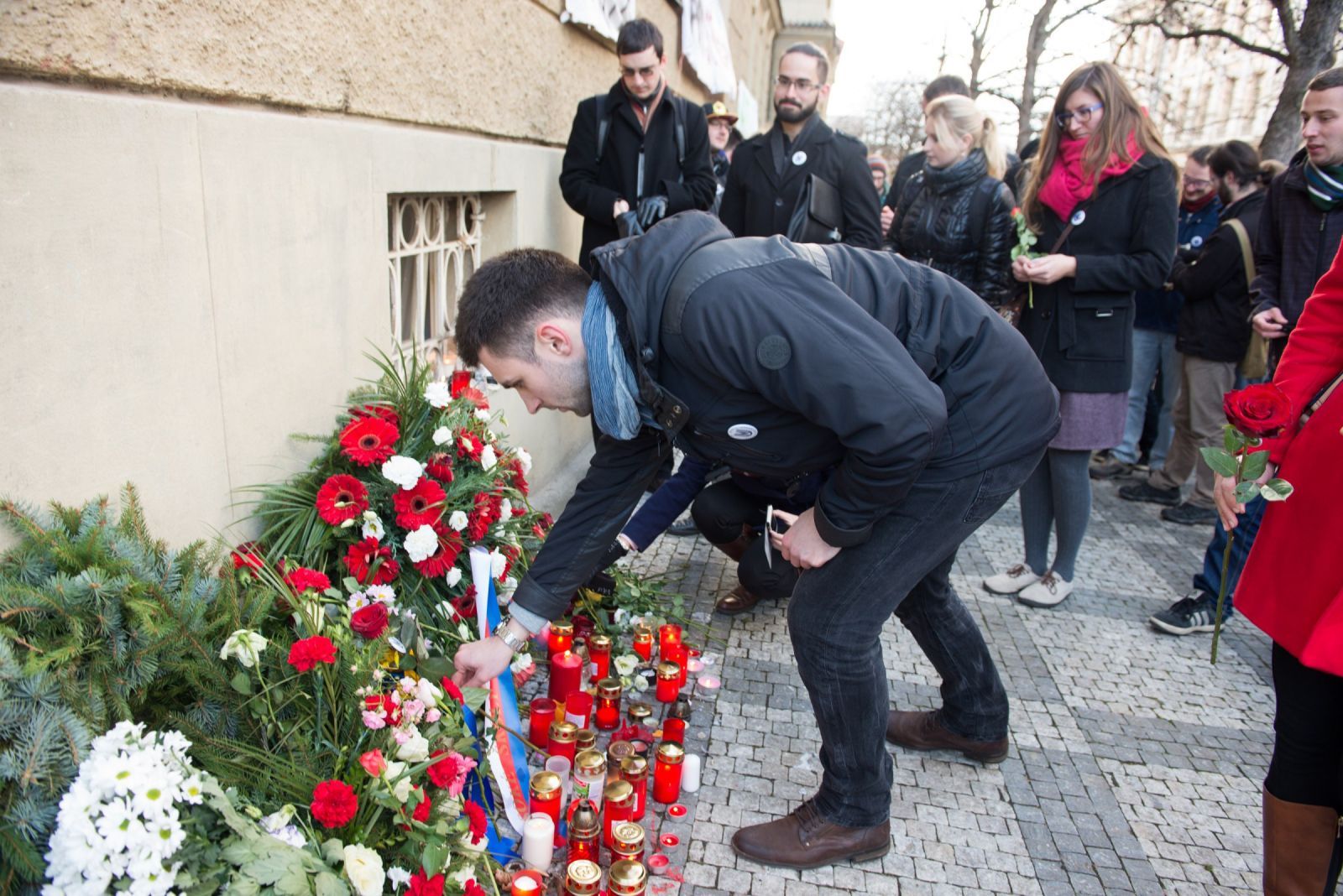 Když skupina zástupců univerzit – rektorů, členů akademických senátů a studentů, přišla na Albertov (asi v 11:00), překvapily je zátarasy, které ohraničovaly prostor s pamětní deskou, patrně kvůli nahlášené demonstraci na podporu prezidenta (ve 14:00). U zátarasů stáli kromě policistů zejména členové ochranky prezidenta, kteří (aspoň dle mého pocitu ze záznamů ČT) dost neobratně a neprofesionálně vysvětlovali – napřed že probíhá pyrotechnický průzkum, poté že mají právo nikoho na místo nevpustit, a nakonec že tedy umožní přístup rektorům spolu se zástupci studentů. Nicméně například studentským zástupcům studentů MU přístup povolen nebyl, k desce se v podstatě dostali jen rektoři a několik zástupců SK RVŠ a členové pěveckého sboru.
