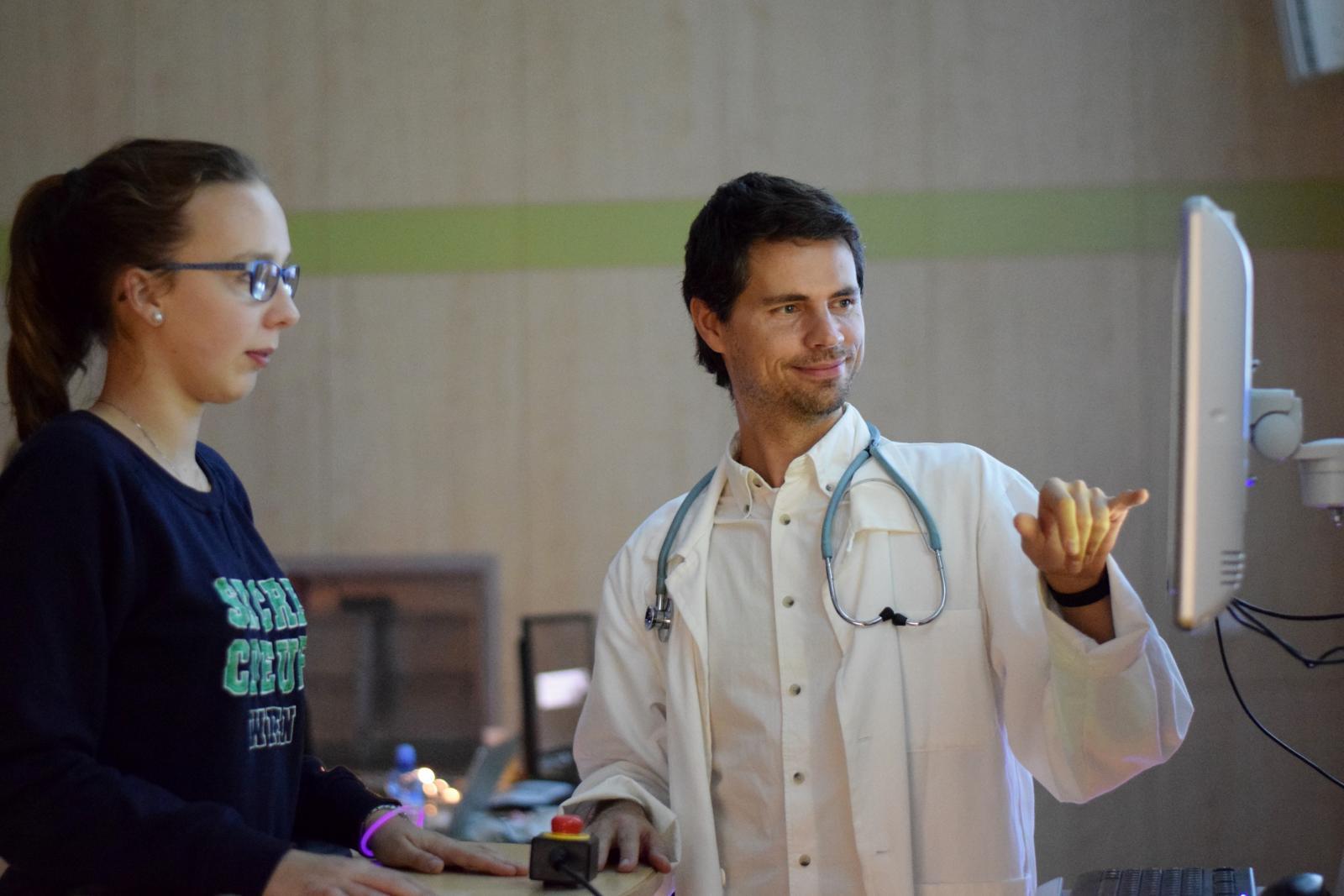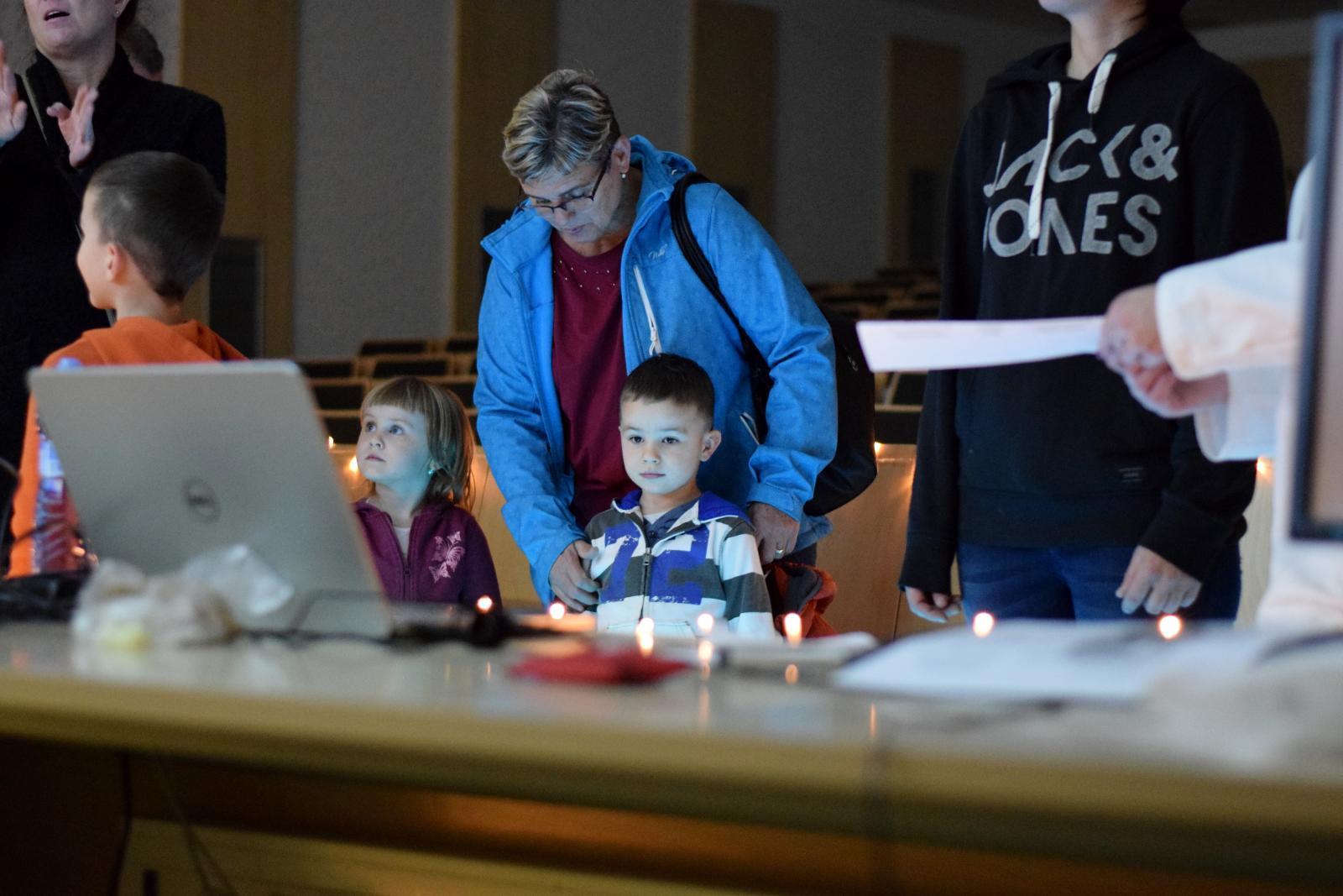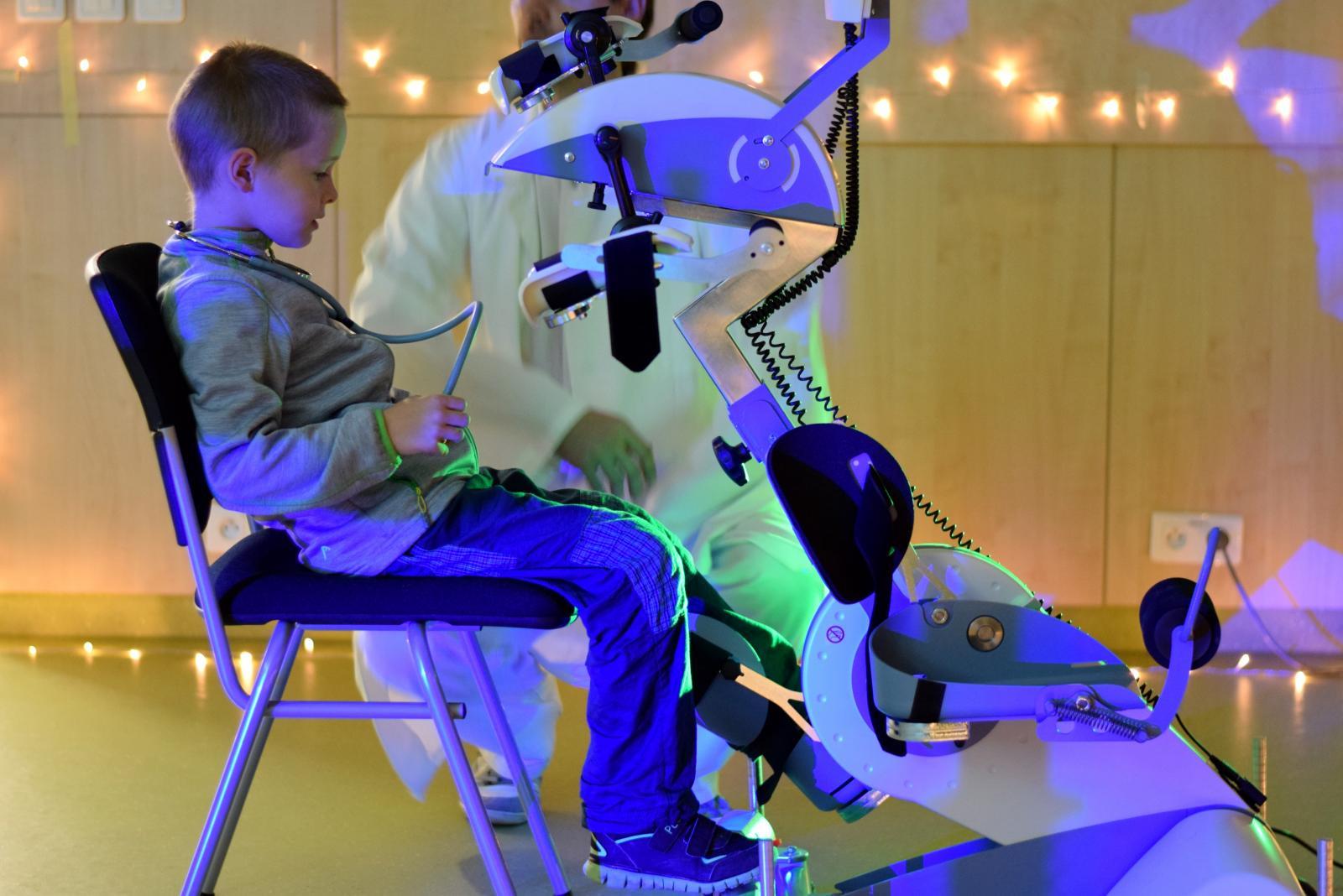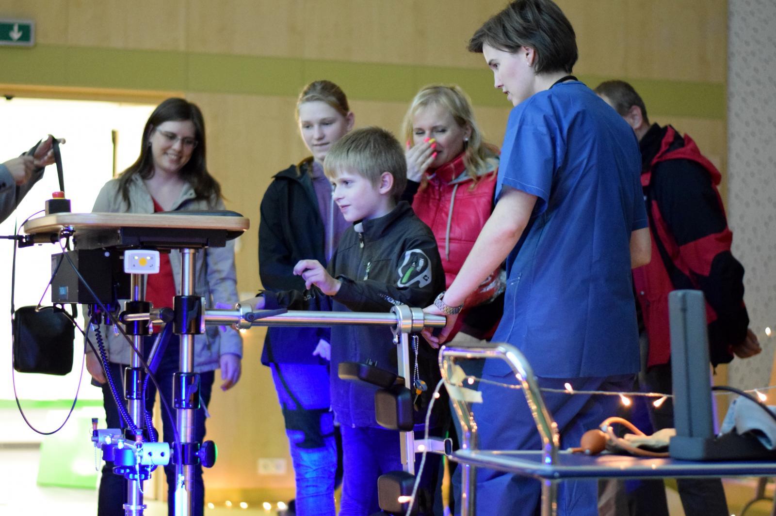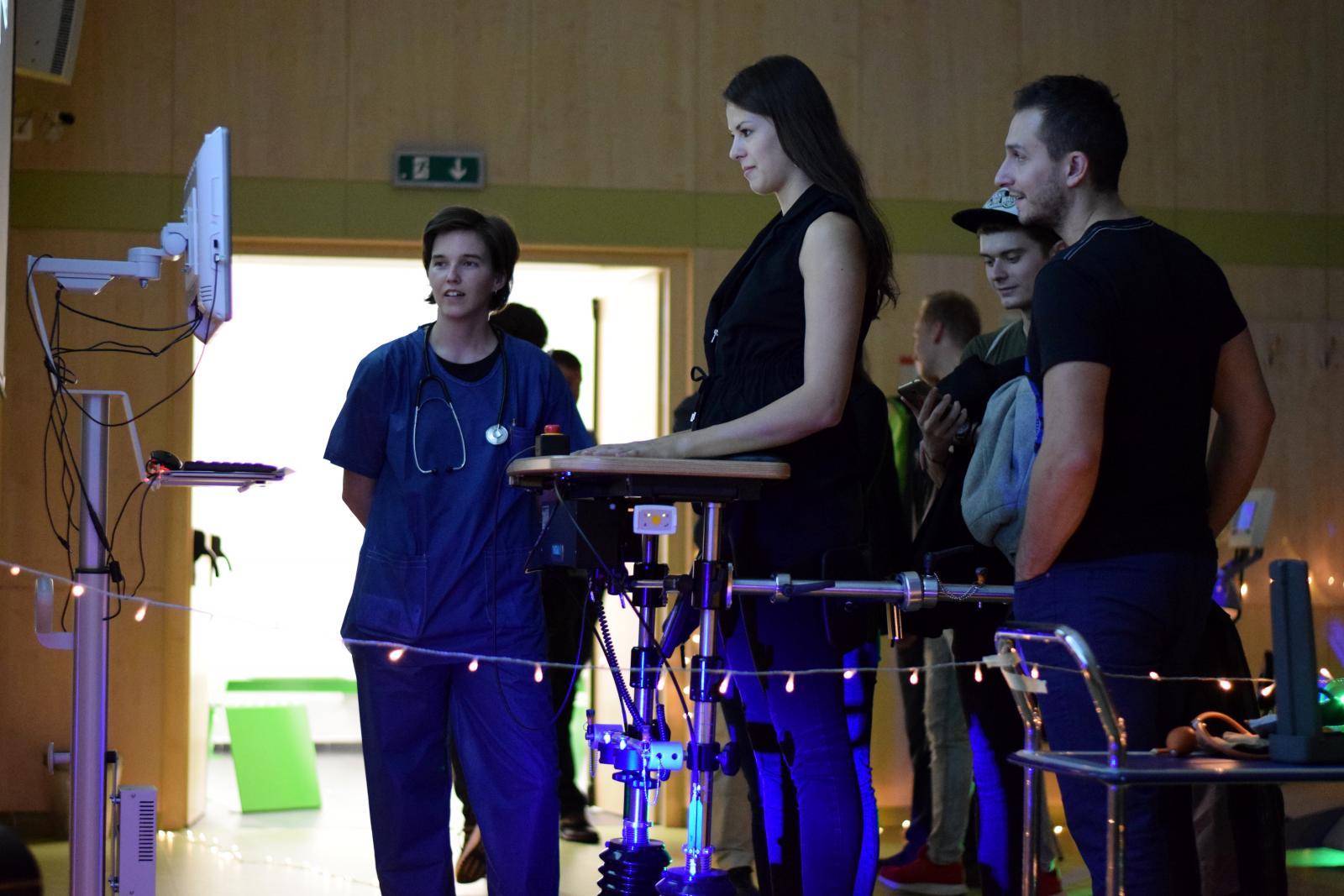 Noc vědců fascinovala stovky návštěvníků. V expozici Ústavu biomedicínského inženýrství si návštěvníci vyzkoušeli pocity vozíčkářů při rehabilitaci ve vertikalizátoru, zatančili si s partnerem na tlakové plošině vizualizující nášlap bosé nohy a na speciálním kole pořádně šlápli do pedálů – ale nikoliv nohama, nýbrž rukama. Interaktivní počítačová hra ovládaná náklonem těla přiblížila návštěvníkům využití herních technologií během rehabilitace. | Autor: Oto Janoušek Mladá generace se rychle adaptovala na herní systém. Čím mladší hráč, tím lepší herní výsledky. | Autor: Oto Janoušek Malí návštěvníci byli nadšení z rotopedu, který špapal za ně. “Ještě chvíli si odpočinu, abych vydržel na nohách až do půlnoci,” svěřovali se malí návštěvníci se svou touhou vidět z Noci vědců na VUT úplně všechno. | Autor: Oto Janoušek “Tohle je druhá nejlepší věc!” radoval se malý kluk z vizualizace svého těžiště a rozložení tlaku chodidel. V jeho očích biomedicínskou expozici předběhla jen návštěva auly FEKT, v jejíž kopuli se cítil jako v iglů. | Autor: Oto Janoušek Návštěvníci soutěžili o atraktivní věcné ceny s tematikou VUT. V soutěži odpovídali na záludné otázky. Někteří návštěvníci dokonce nad rámec soutěže soutěžili mezi sebou v tom, kdo na rehabilitačním rotopedu ujede delší vzdálenost. | Autor: Oto Janoušek O velkém zájmu svědčila účast veřejnosti, ale též účast studentů, doktorandů a zaměstnanců se svými partnery, manželi a dětmi. Expozici si dokonce přišla prohlédnout paní učitelka s celou třídou dětí. | Autor: Oto Janoušek K podmanivé atmosféře ztemnělé místnosti s nasvětlenými exponáty přispěli performeři, oblečení jako lékaři a sestry. Stejný tým už přemýšlí nad programem pro příští Noc vědců. | Autor: Oto Janoušek