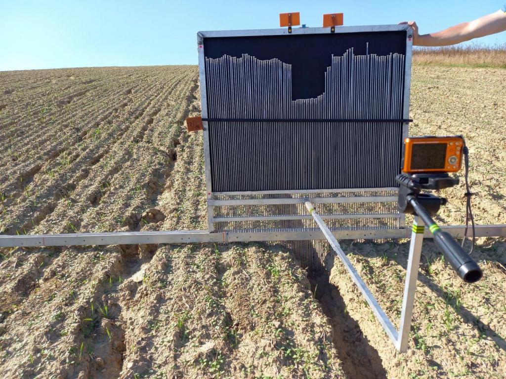 When Veronika Sobotková and her colleagues from the Faculty of Civil Engineering of BUT go out to make field measurements, she returns with dozens of photographs. On all of them there is a so-called erodometer, which can be described as a large frame with needles that lower to the ground and show the profile of soil damaged by erosion. "Erodometer is a device that was designed and manufactured by the Institute of Landscape Water Management. It allows the measurement of the soil surface profile and the quantification of the volume of erosion grooves that can occur on sloping land after torrential rains. Hundreds of erosion groove profiles were surveyed directly in the field with results many times exceeding the permissible soil losses," explains Sobotková.