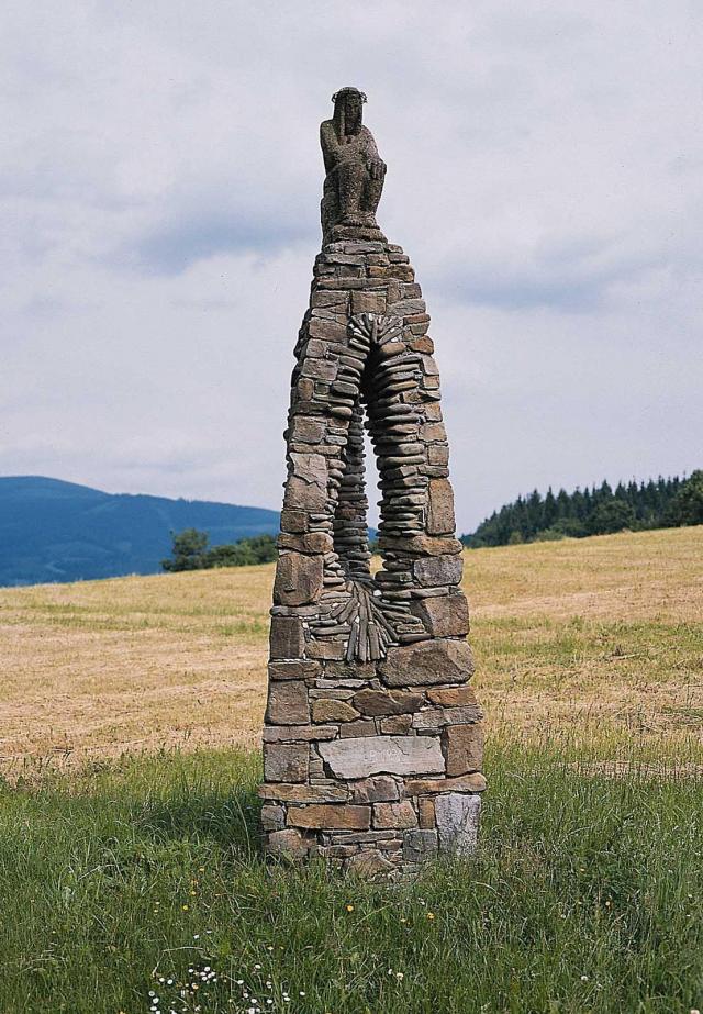 Vůbec nezchátrala, je pořád ve stejném stavu. Takže ti chlapi, co tenkrát chodili kolem a smáli se mi, že to lepím jak vlaštovčí hnízdo a že to spadne, ti se pletli. Vznikalo to naprosto intuitivně – koupili jsme cement, namíchali beton, nasbírali kameny a oblázky a postavili jsme to. A ten beton je dostatečně pevný a vydržel.